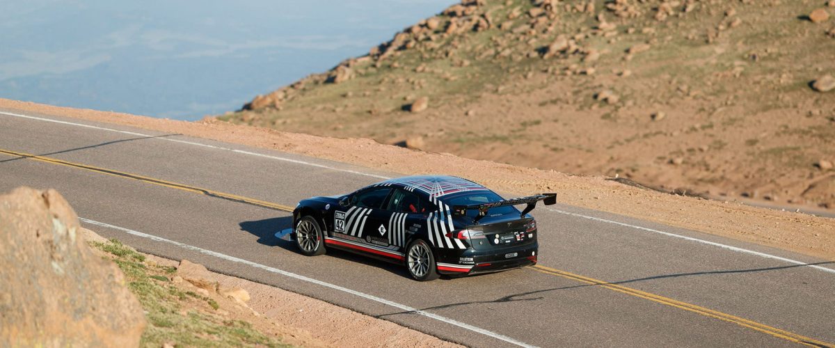 Today Randy Pobst ran the lower section of Pikes Peak International Hill Climb establishing our qualifying time on the second day here at The Broadmoor Pikes Peak International Hill Climb by Gran Turismo – With a sector time of 4:10.342 and a top speed of 140mph, Randy & our Unplugged Performance Model S Plaid qualified at the top of the exhibition class, leading the pack by over 5 seconds!