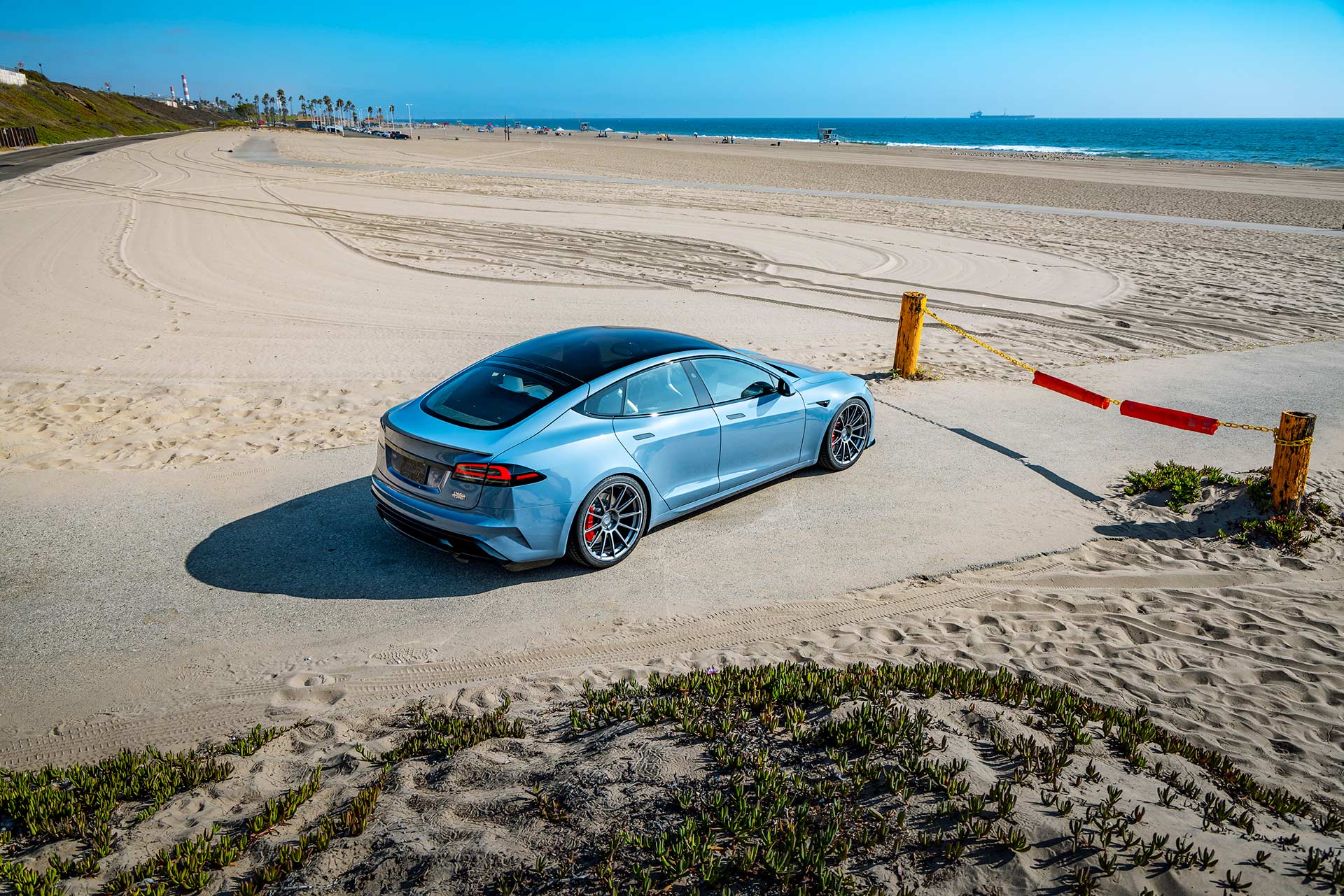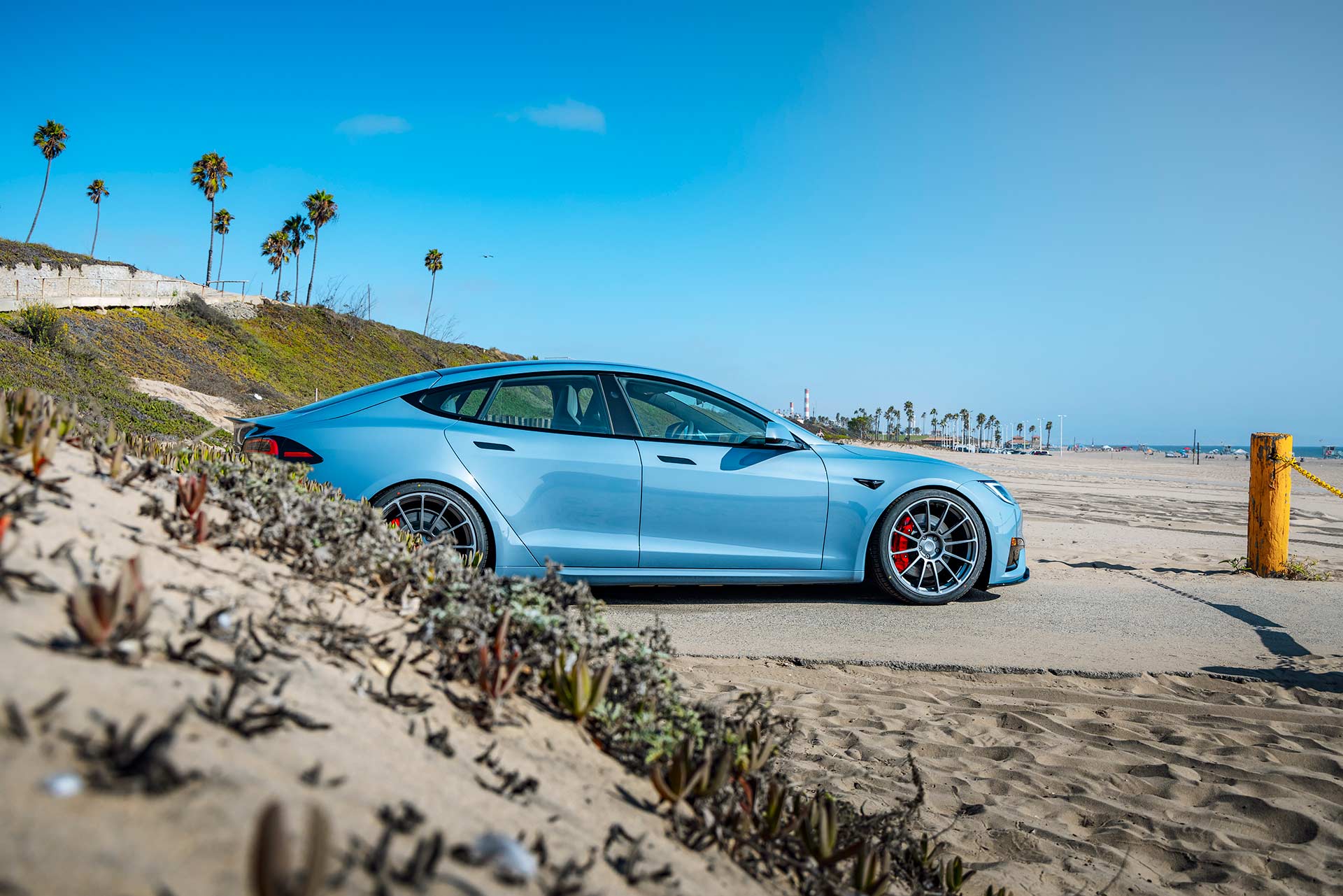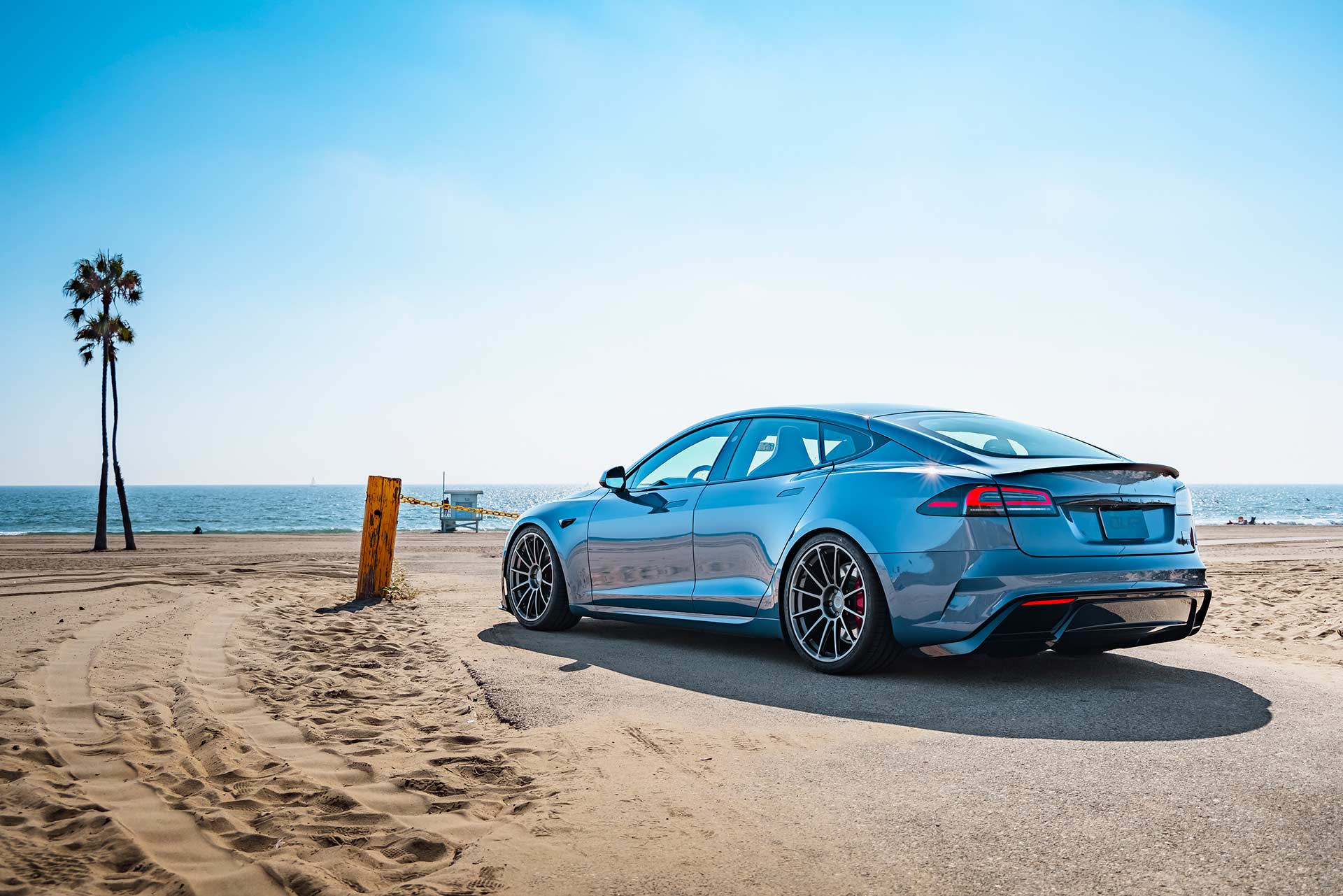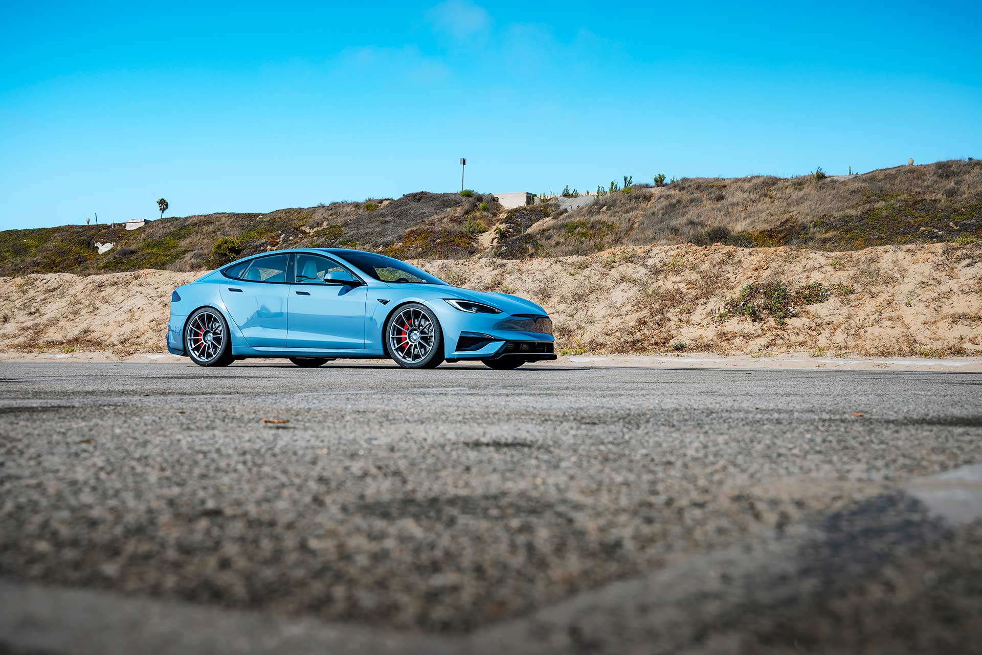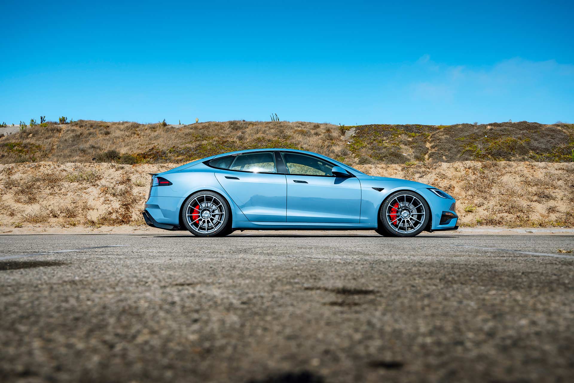 2026 Frost Blue Metallic Tesla Model S Plaid with UP Forged UP-03 Wheels in Satin Titanium