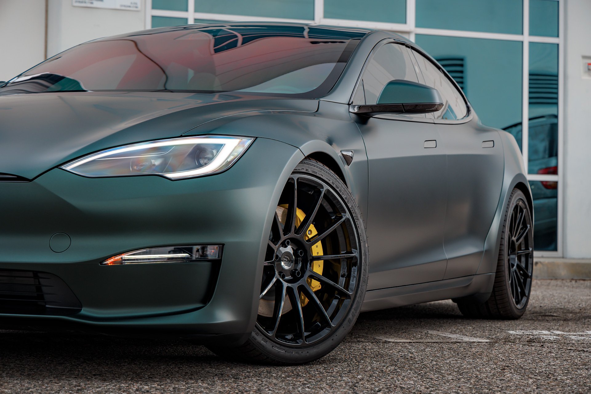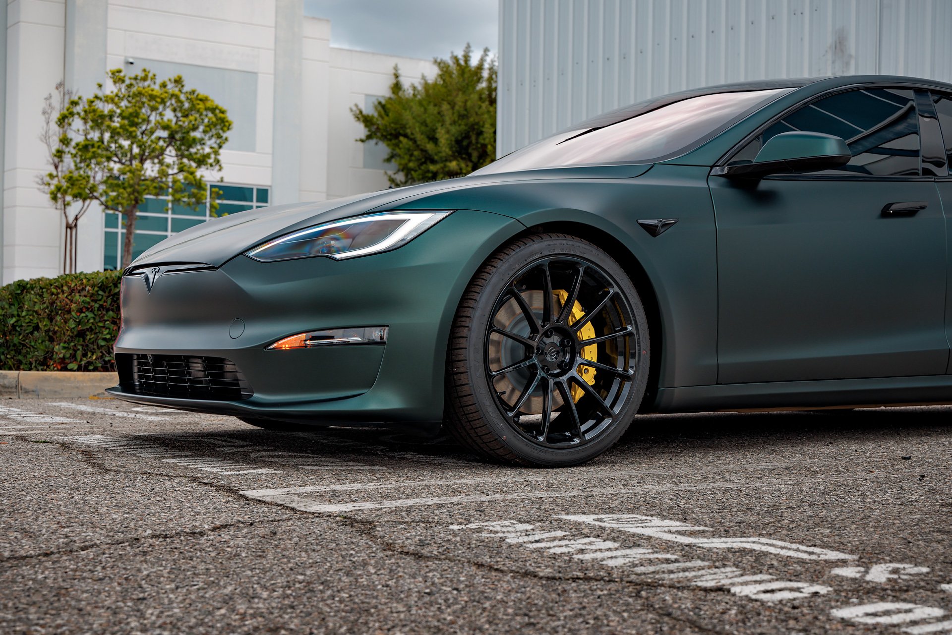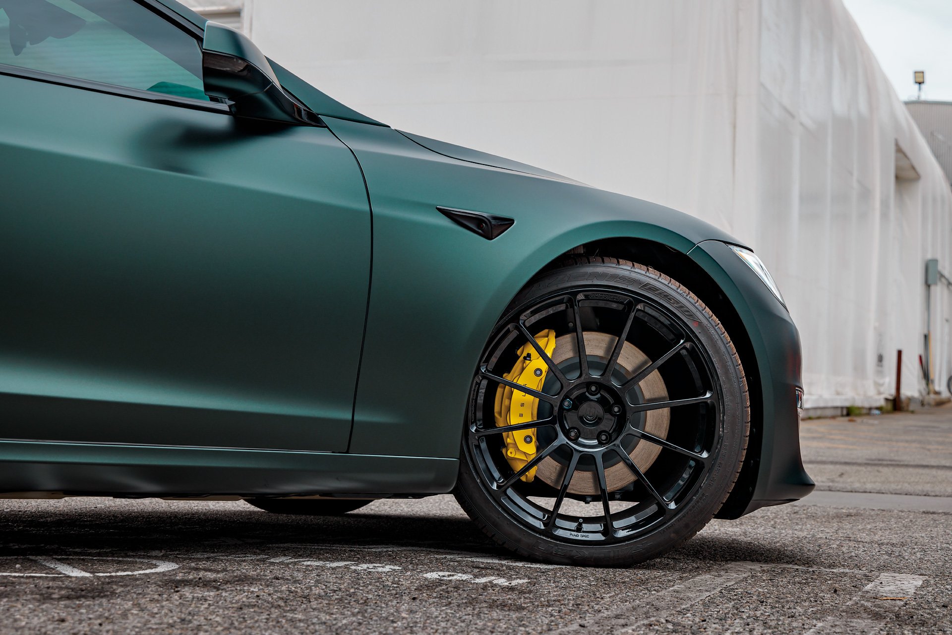 Dark Sage 2026 Tesla Model S with UP Forged UP-03 Gloss Black Wheels