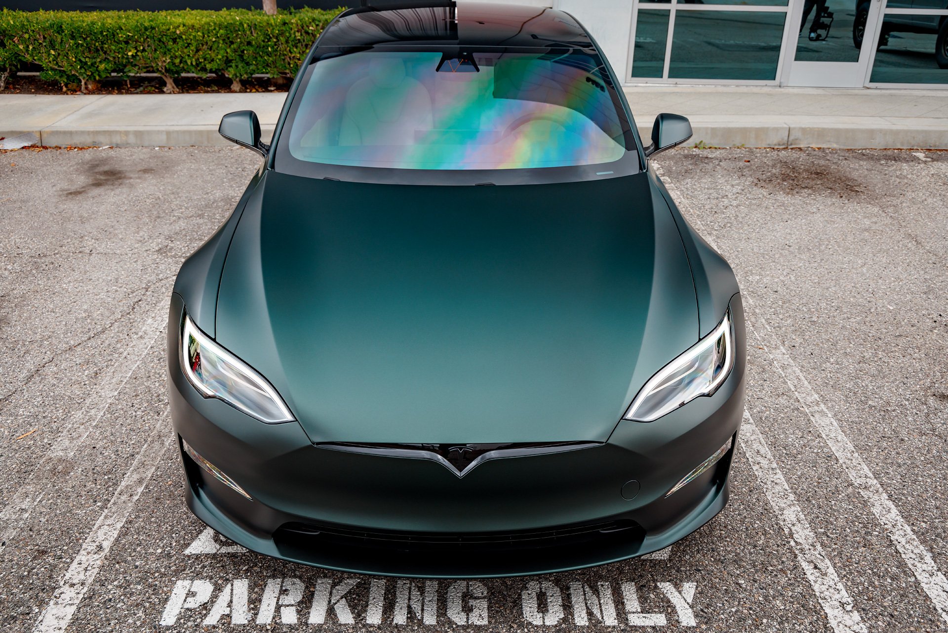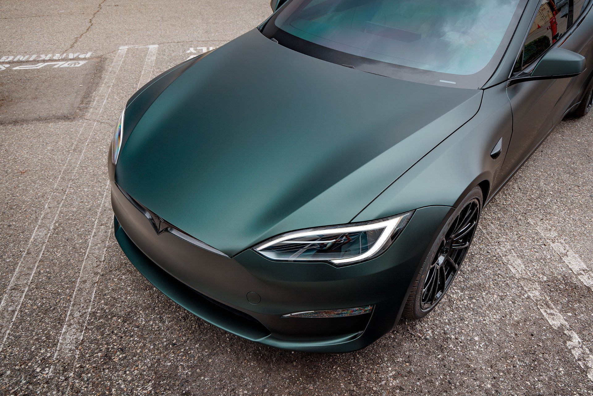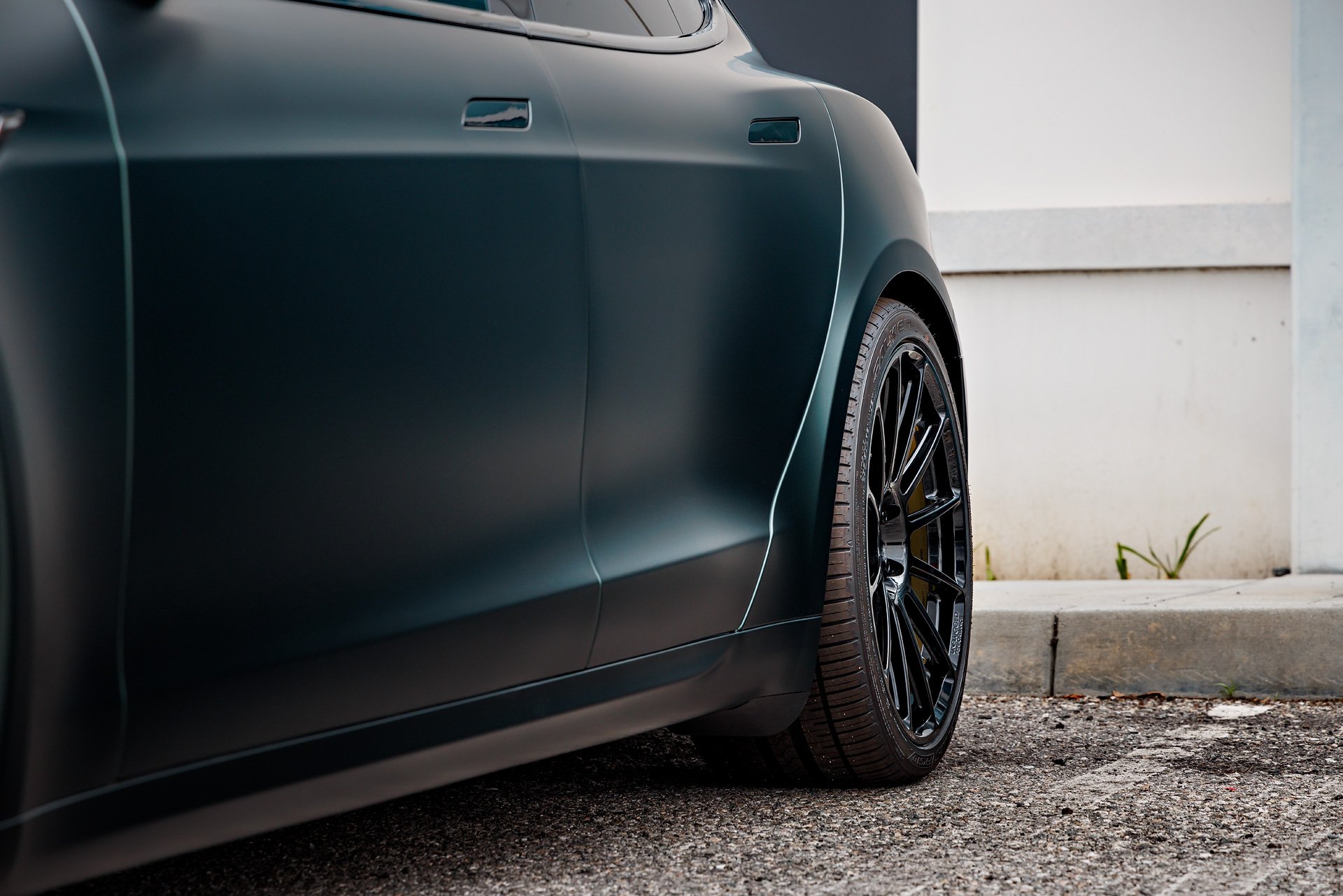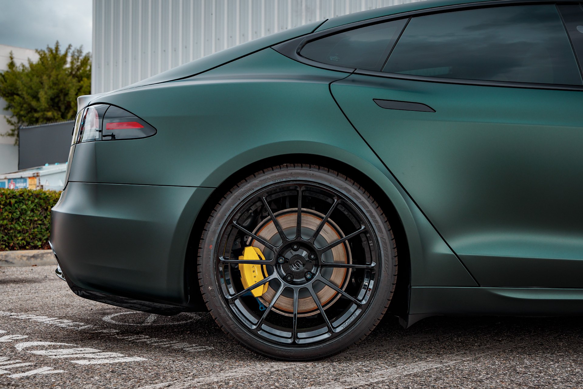 Dark Sage 2026 Tesla Model S with UP Forged UP-03 Gloss Black Wheels
