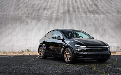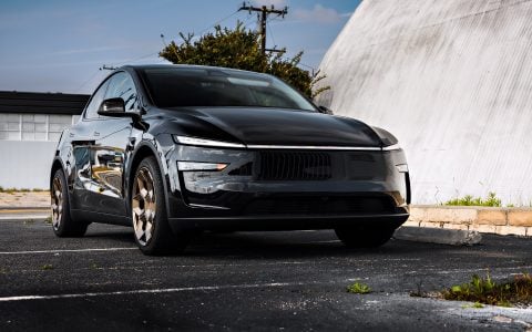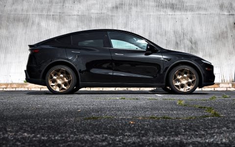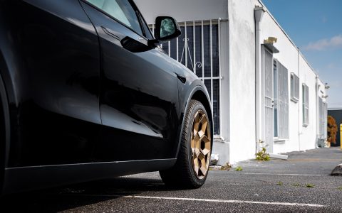 Diamond Black Tesla Model Y Juniper on CYBRHEX Forged Wheels in Satin Bronze