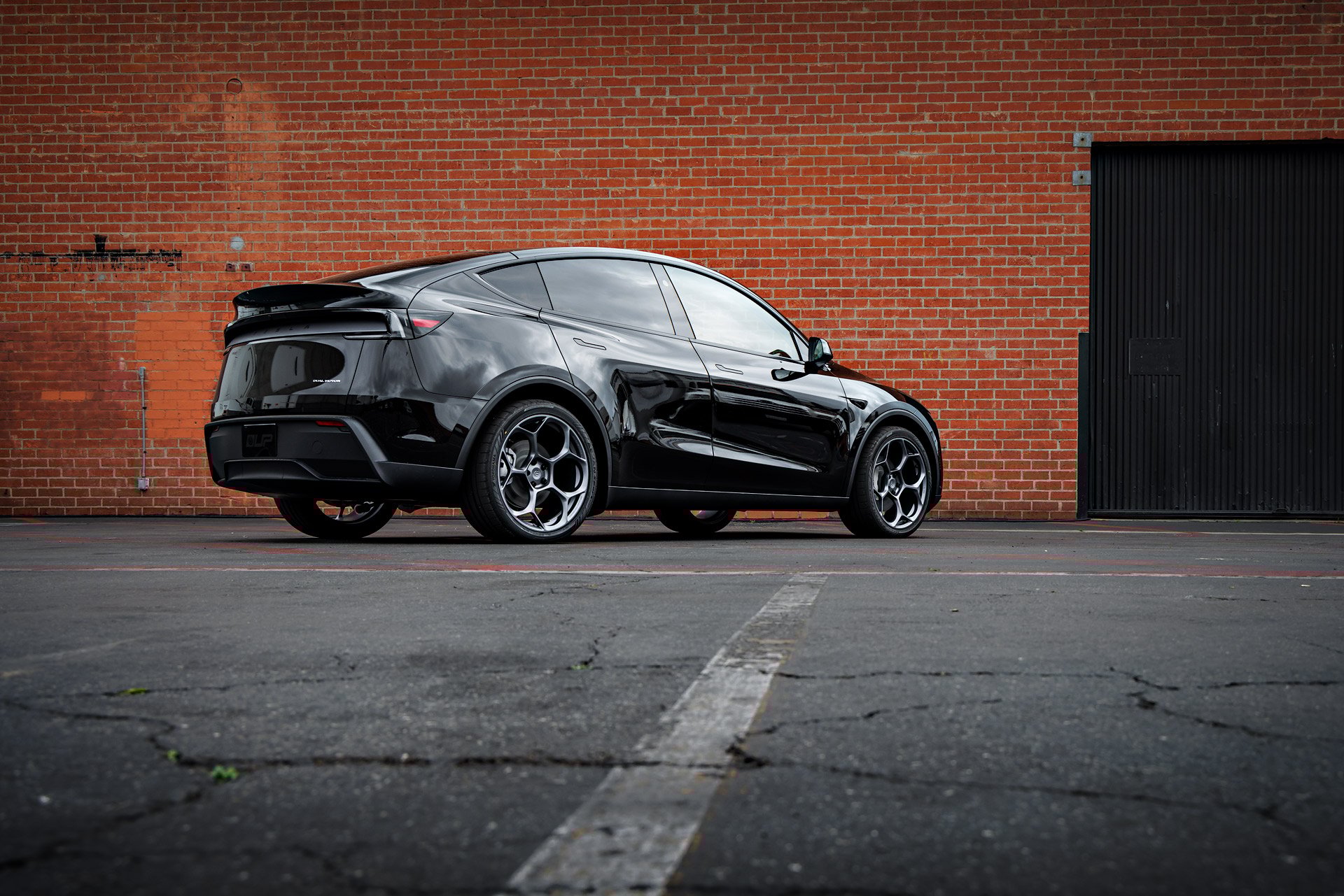 Diamond Black Tesla Model Y Juniper on UP Forged UP-05 Wheels in Satin Titanium