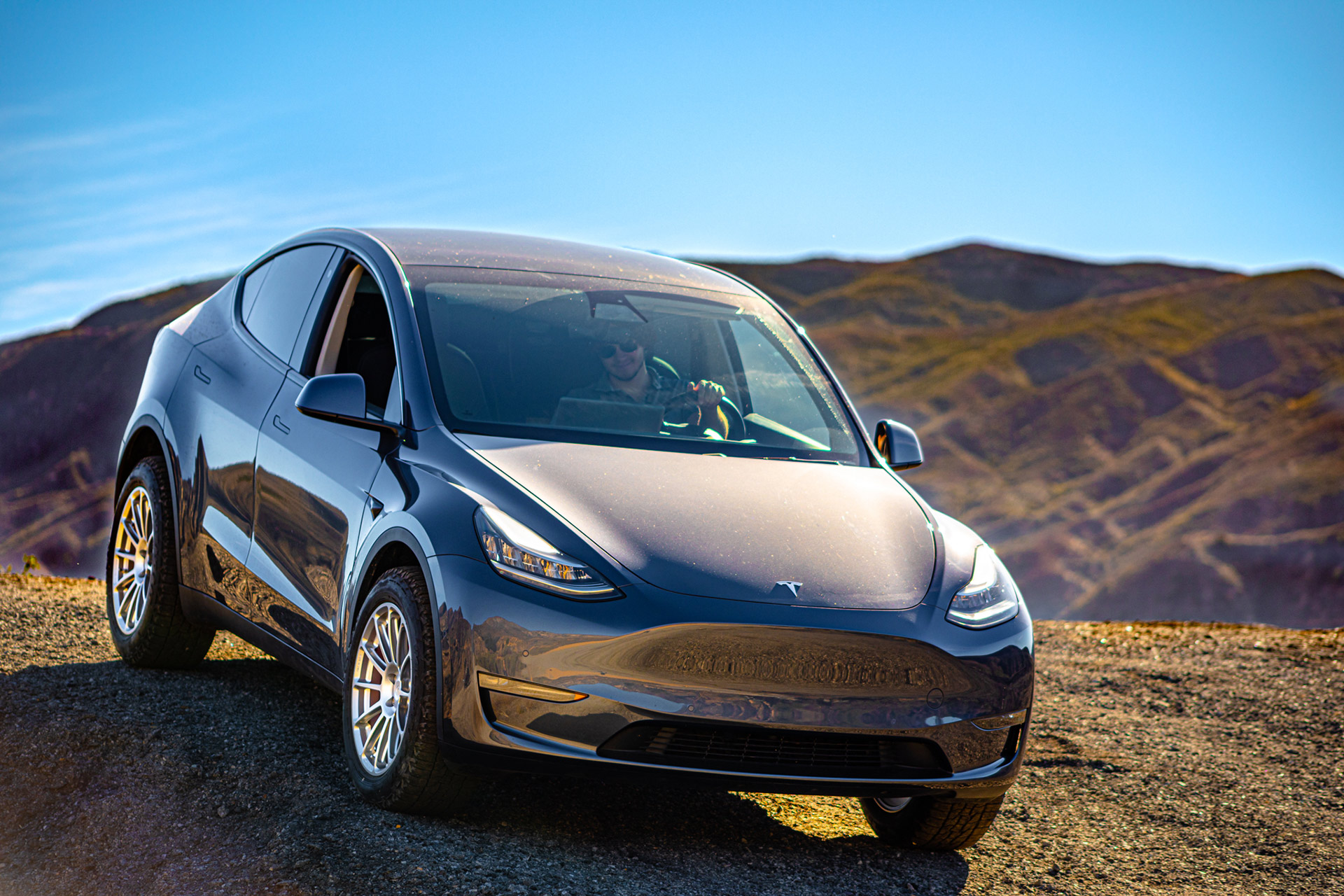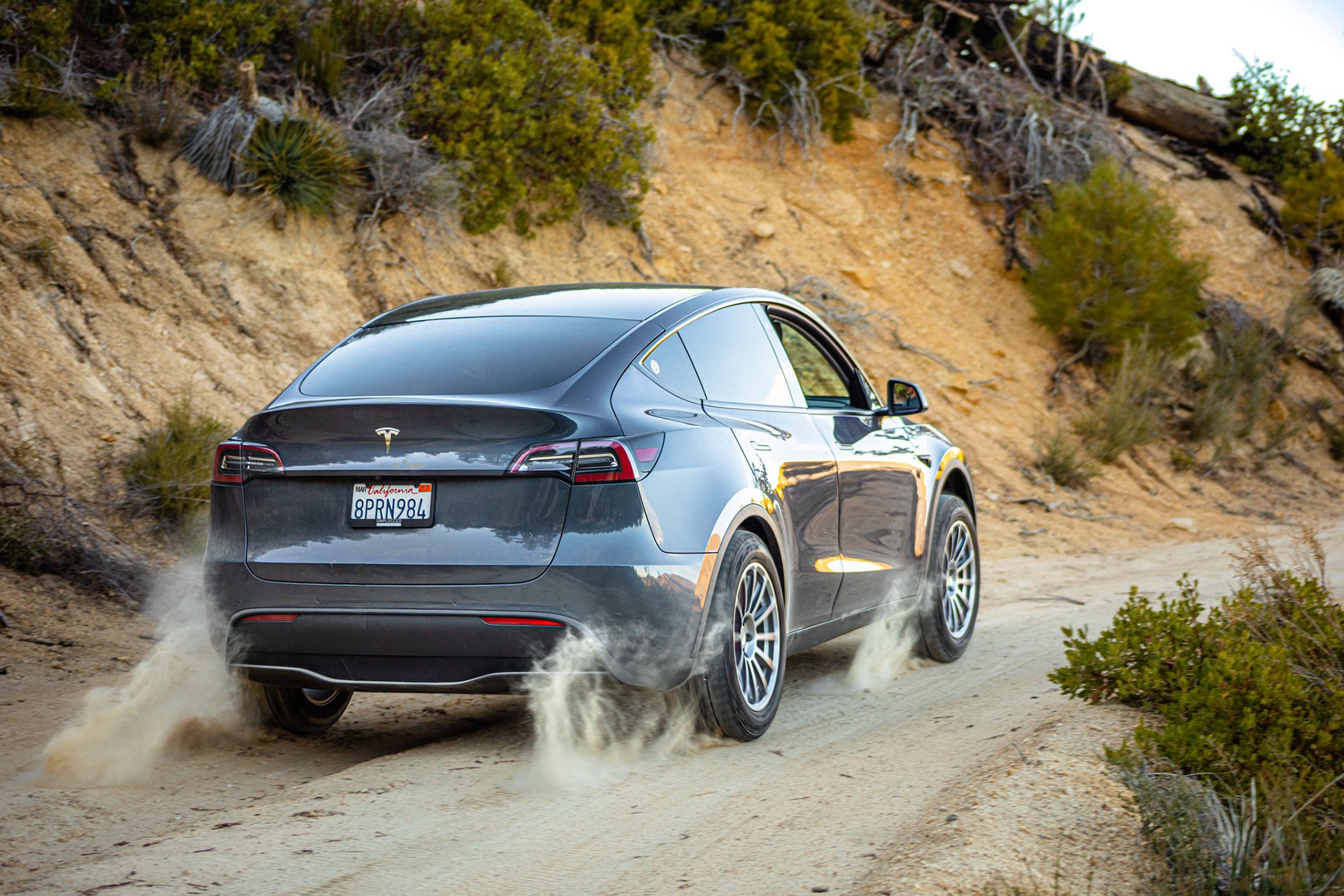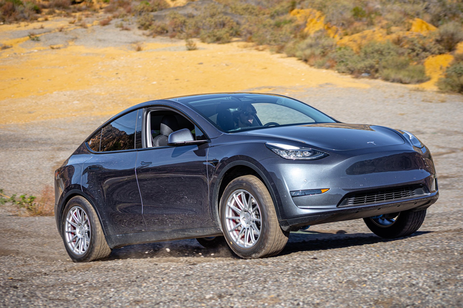 Lifted Tesla Model Y on Dirt and Snow Coilovers