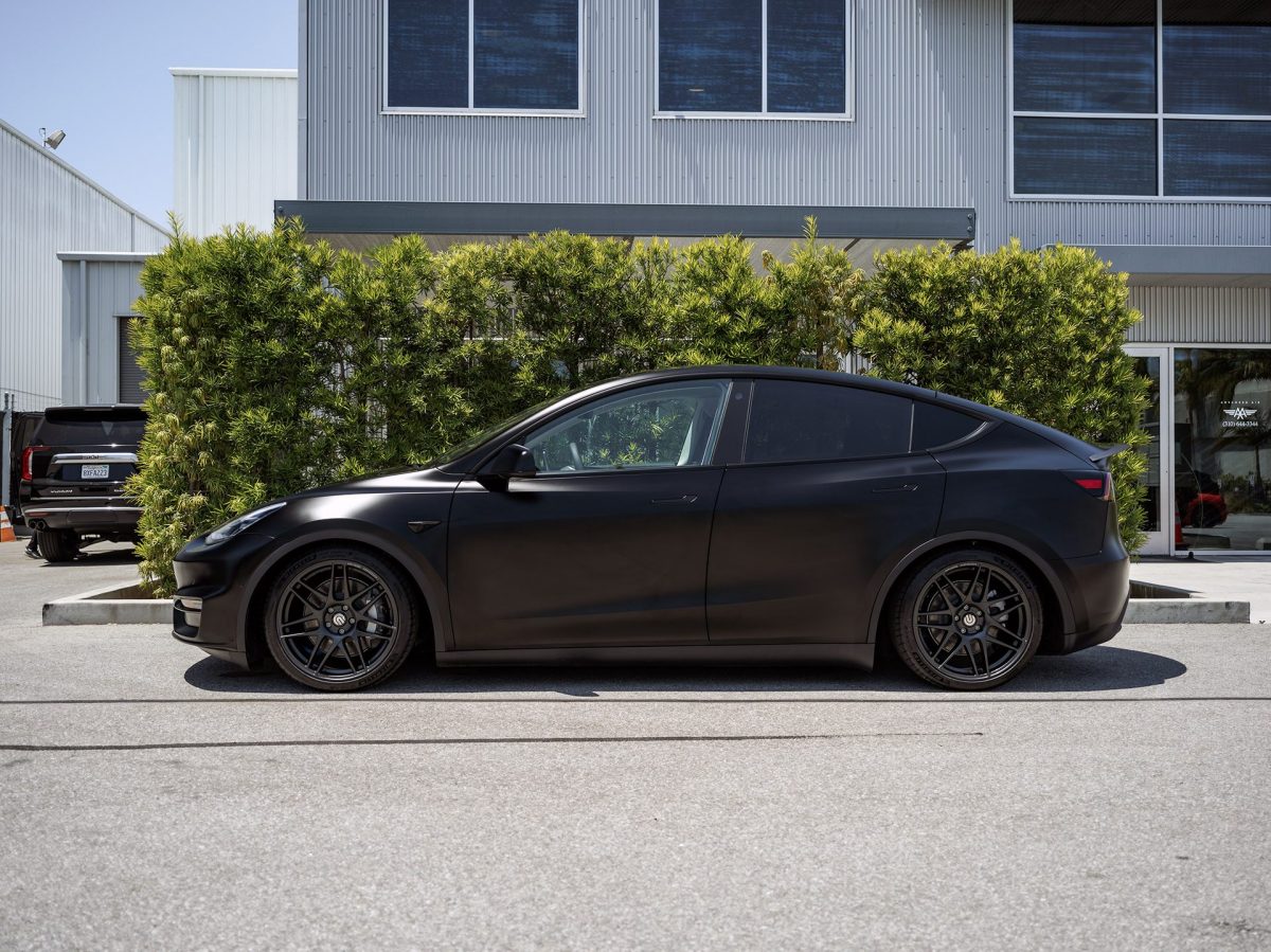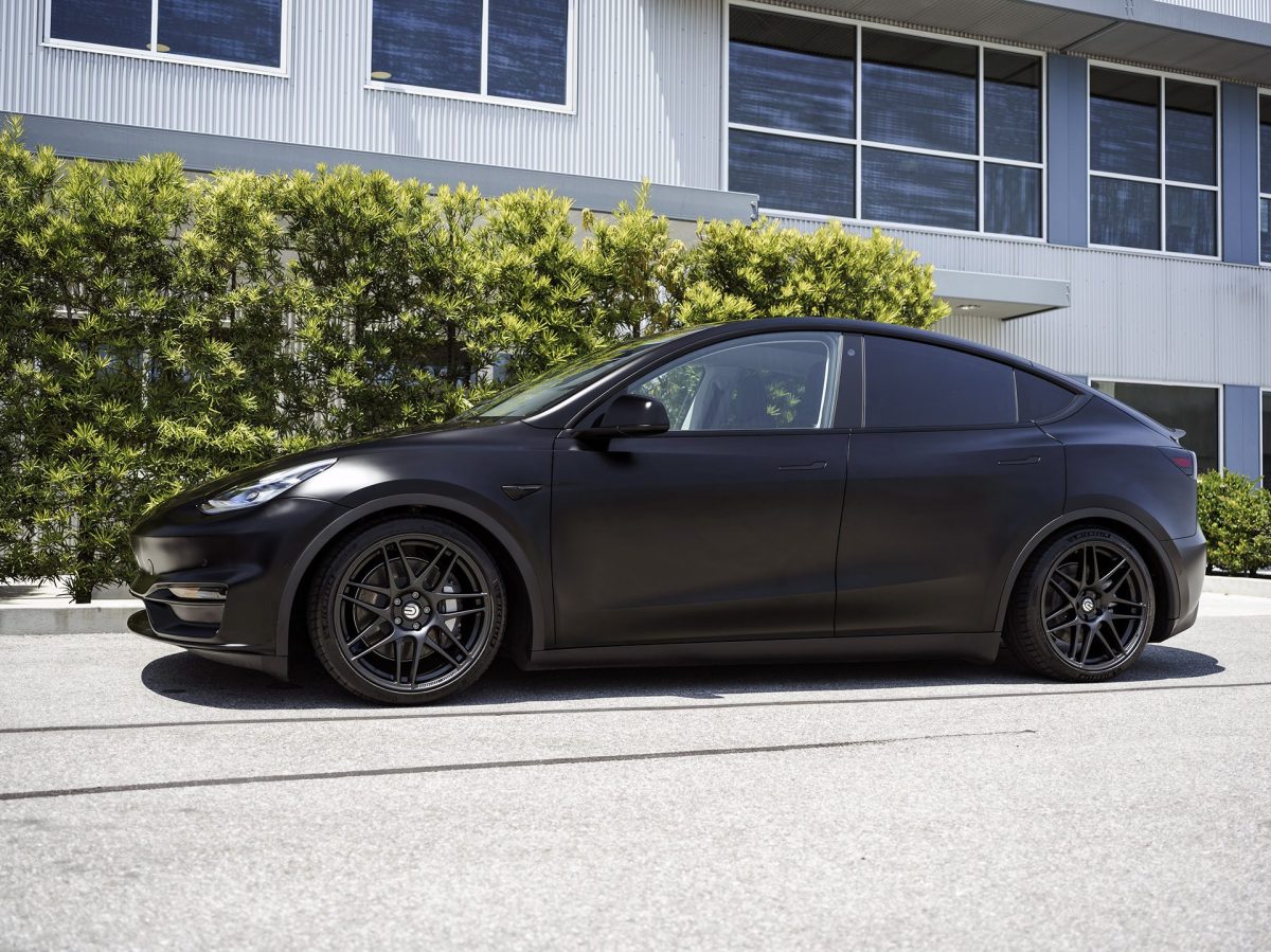 Matte Black Wrapped Tesla Model Y – UP x BBS Flugplatz Wheels