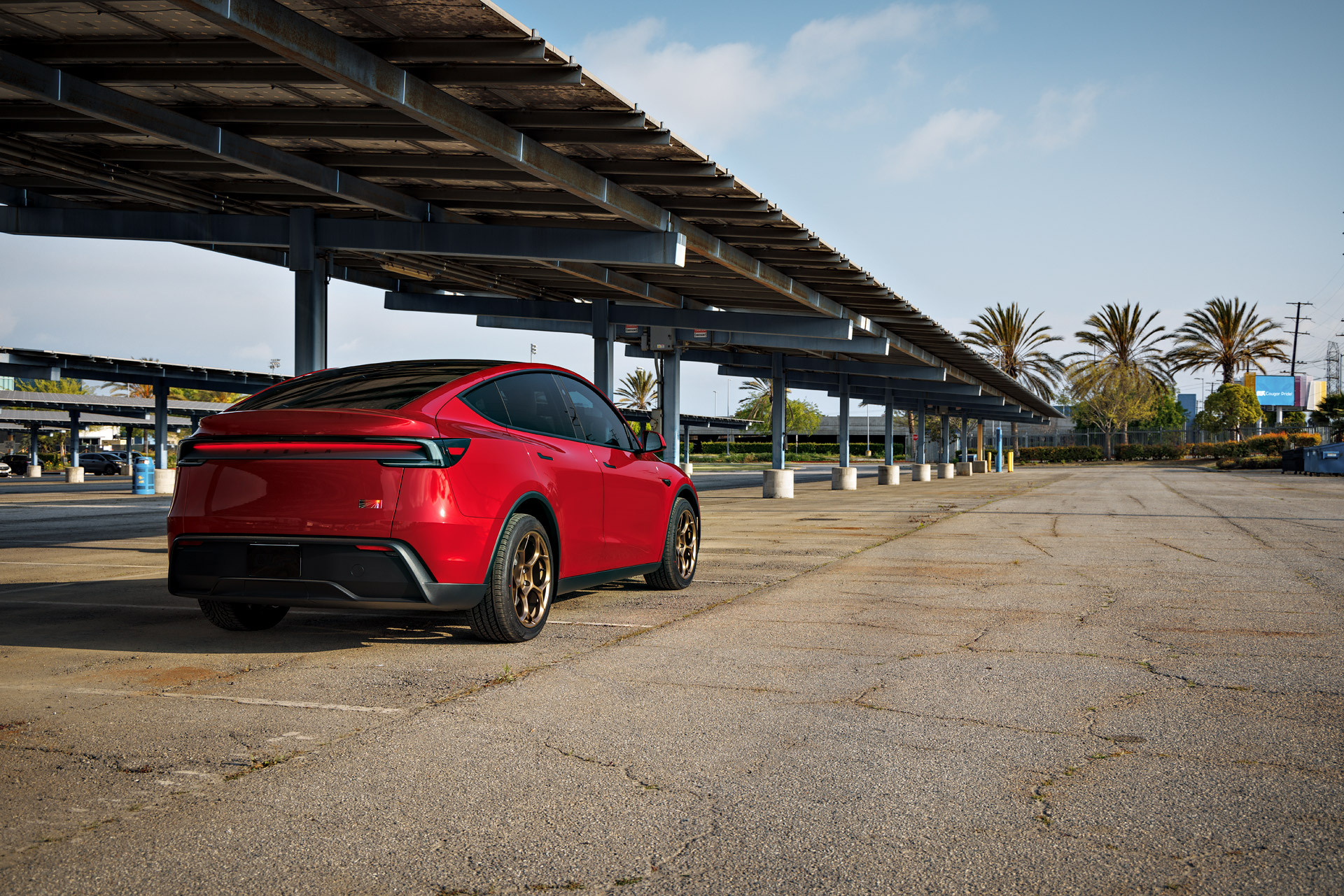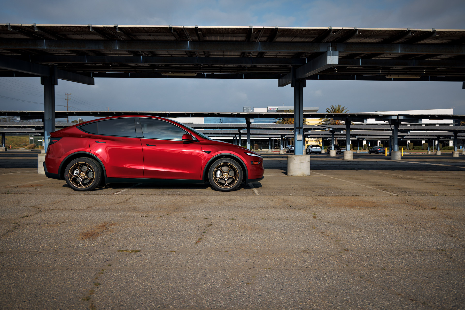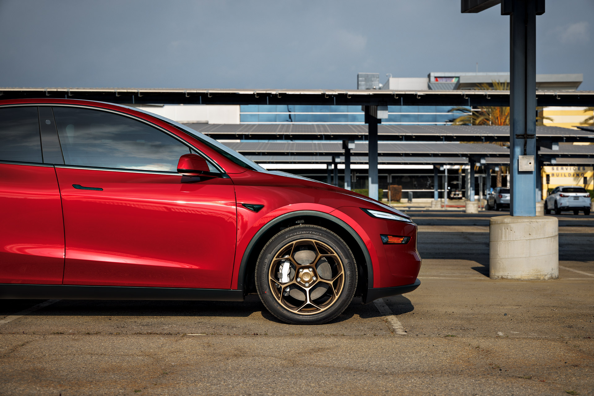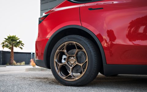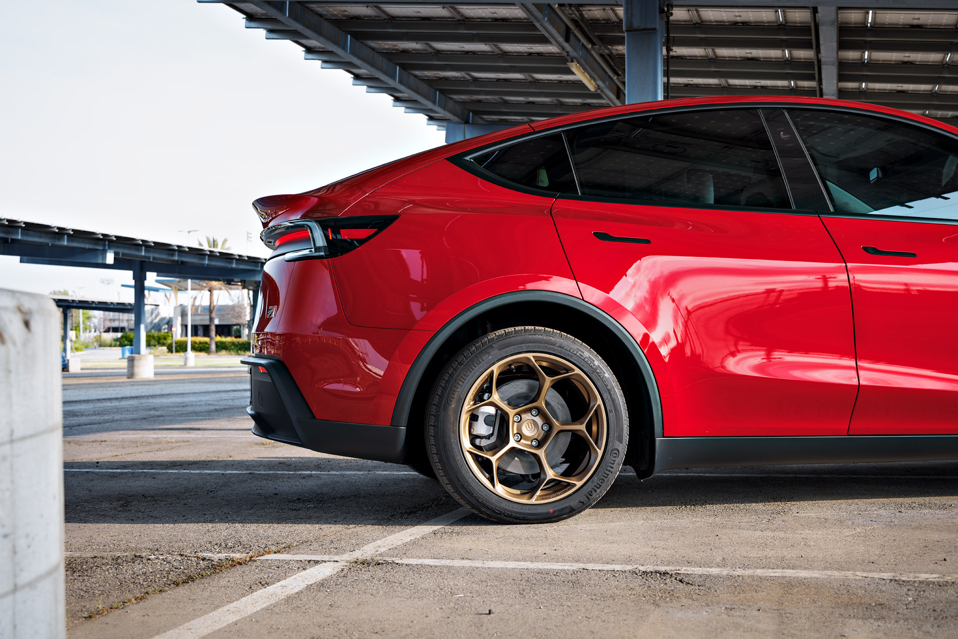 Red 2026 Tesla Model Y Juniper on UP Forged UP-05 in Satin Bronze