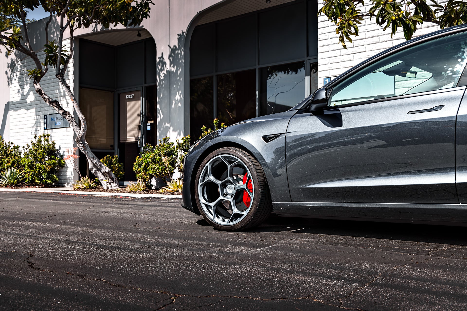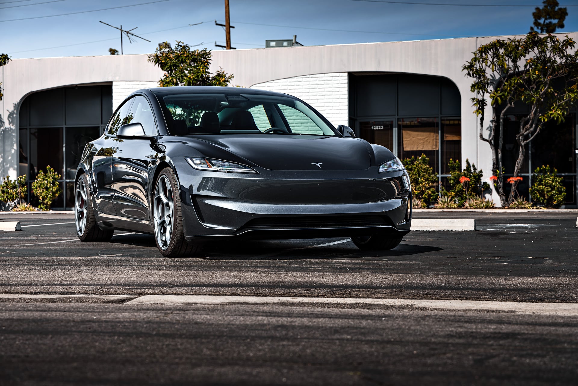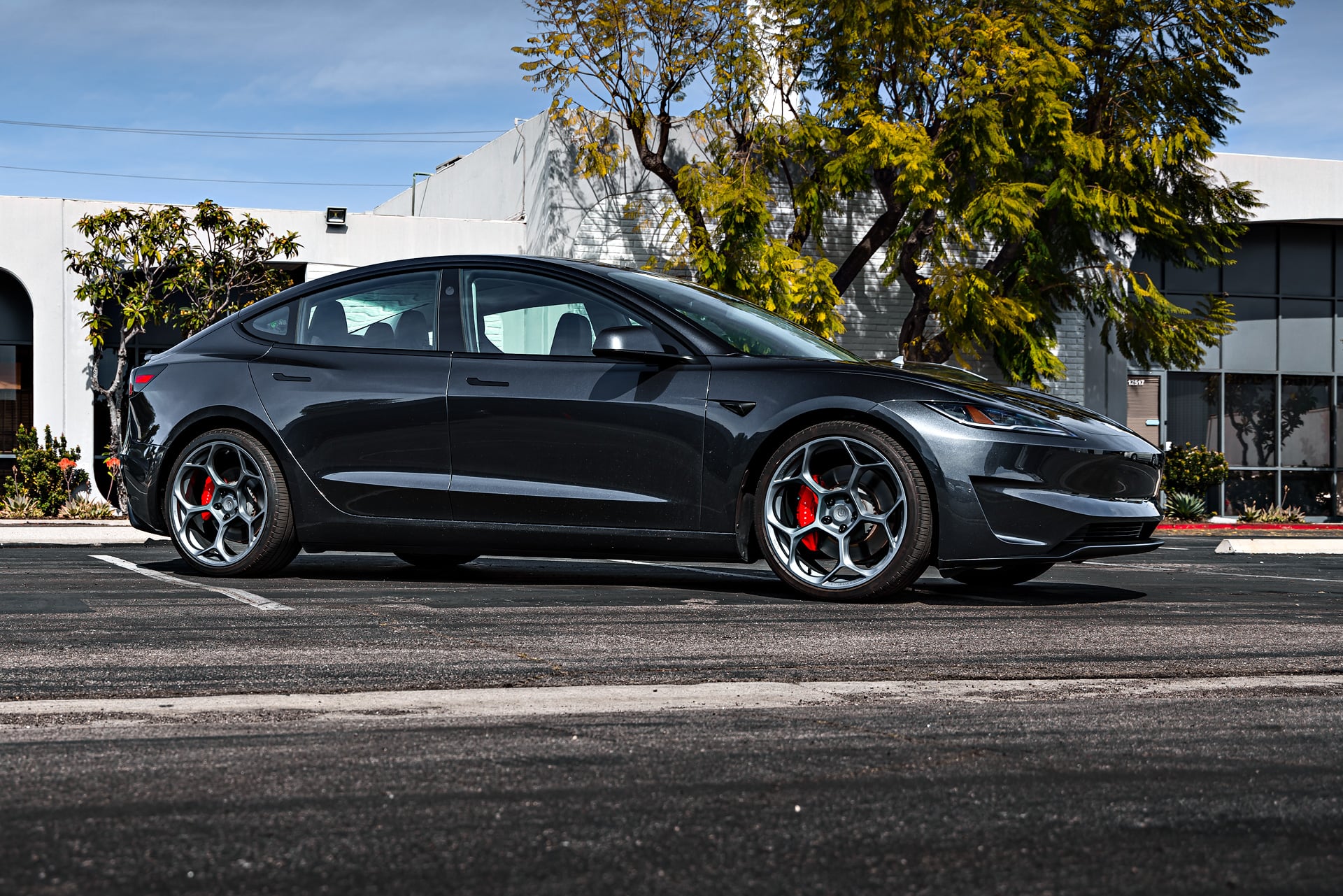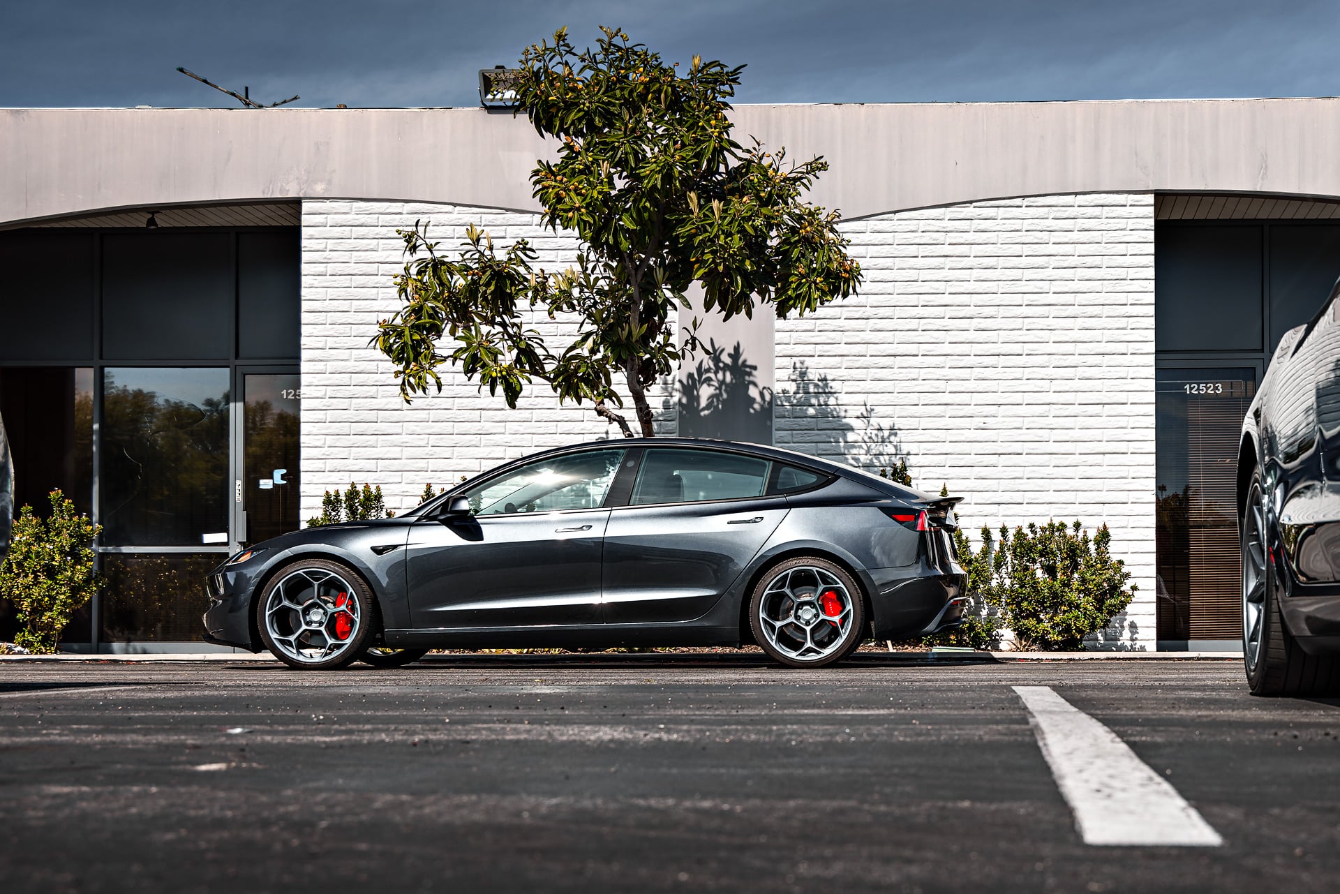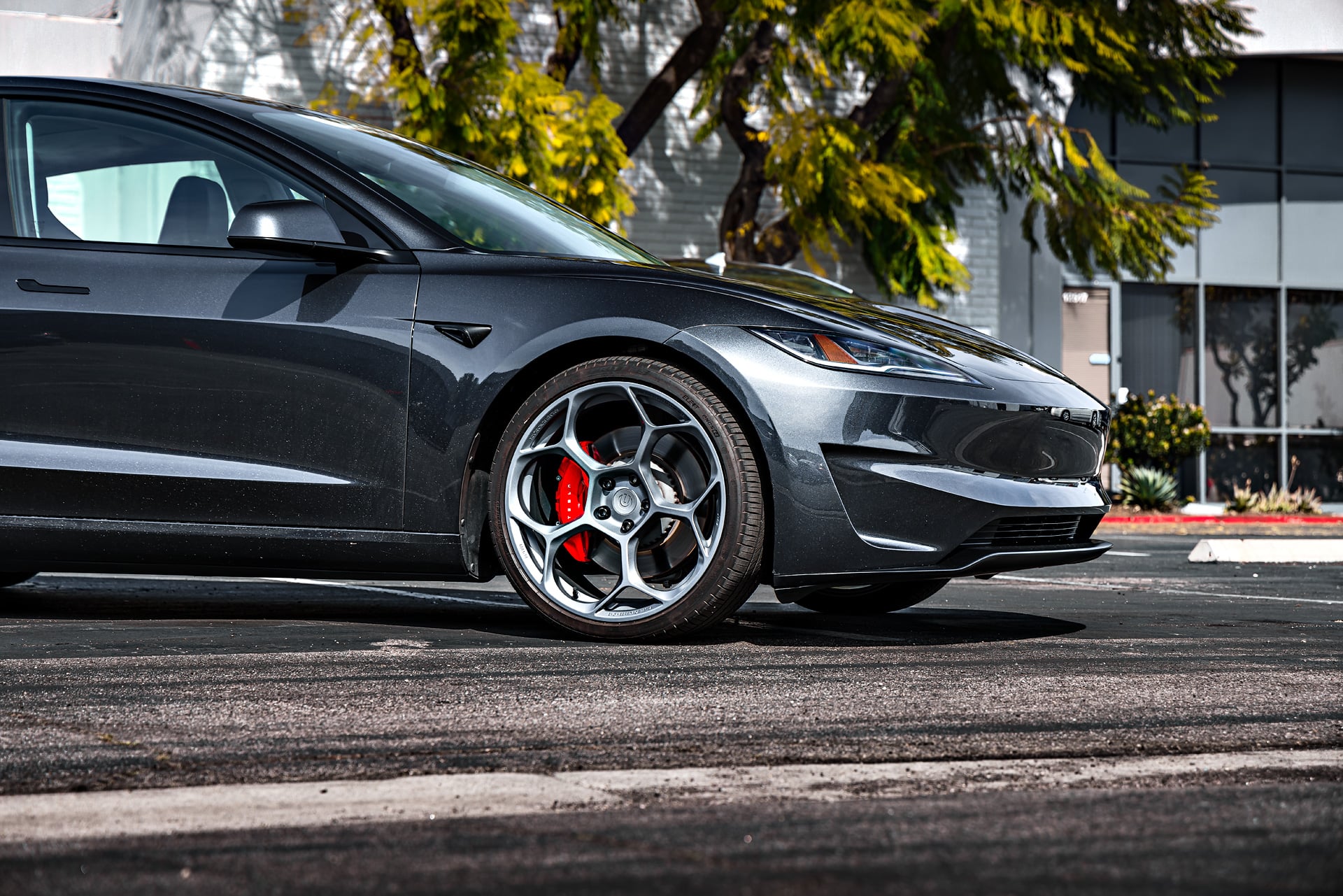 Stealth Grey Tesla Model 3 Performance Highland on 20-Inch UP Forged UP-05 Wheels