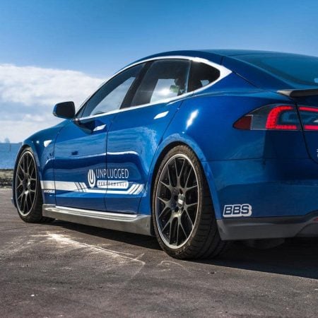 Known as “Mr. Tesla,” Tudor is one of the biggest [and most famous] Tesla Motors fans in the world. Following the purchase of his facelifted Model S (not his first Tesla!), Tudor came to us to help increase the performance of his already impressive P100D. Understanding the benefits of weight reduction, he began with our Superlight Carbon Ceramic front brake kit (removing 20lbs of unsprung weight!), and continued with our lightweight forged UP-02 21″ wheels to maximize the savings. Wanting to match the performance capabilities of his brake and wheel upgrades, Tudor then opted for our Front Lip Spoiler for the 2016.5+ Facelifted Model S and rounded out the look with our replacement Side Skirt set. With its blend of performance and styling, Tudor’s P100D is one of our favorite customer cars!