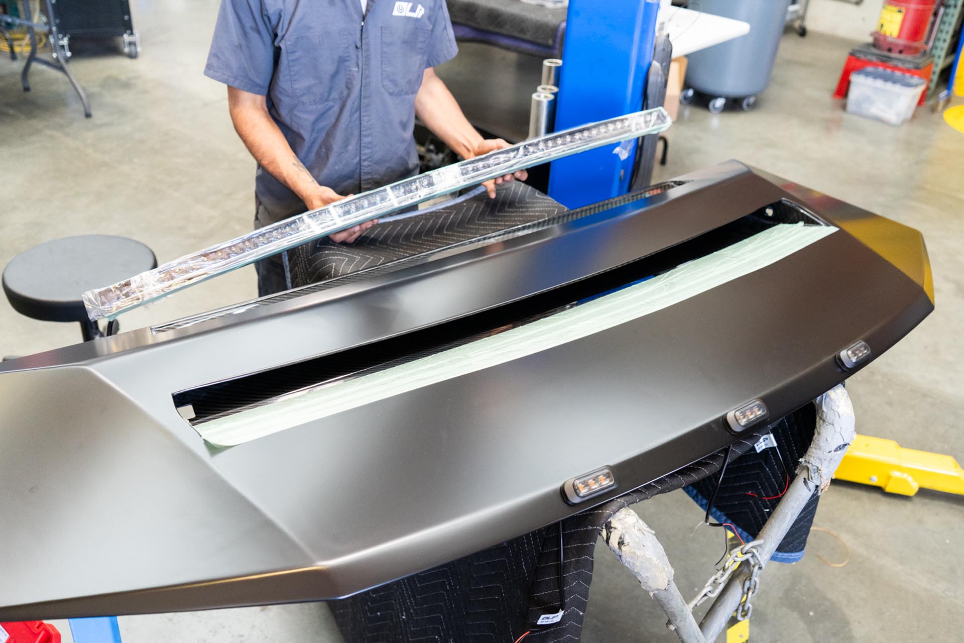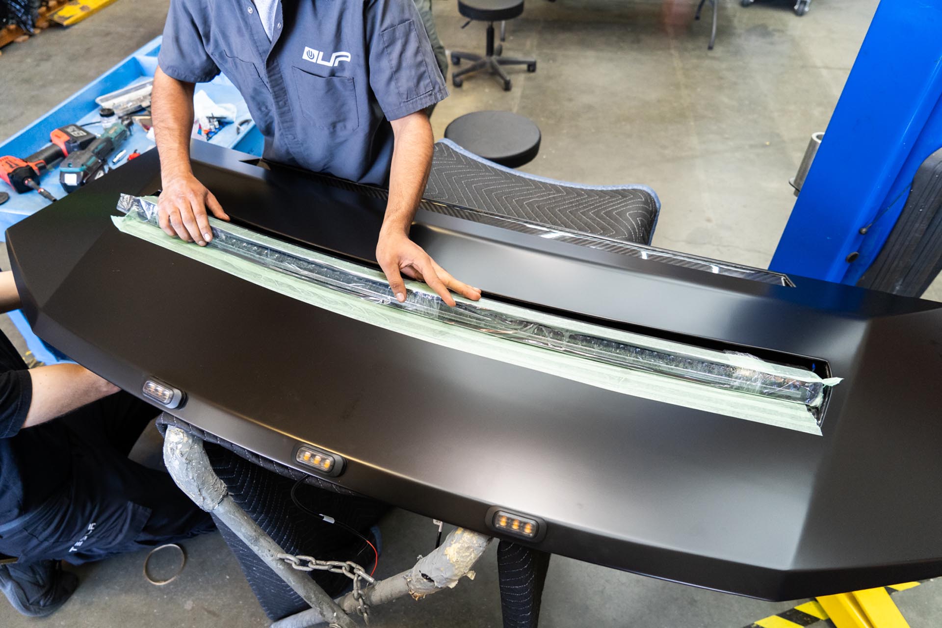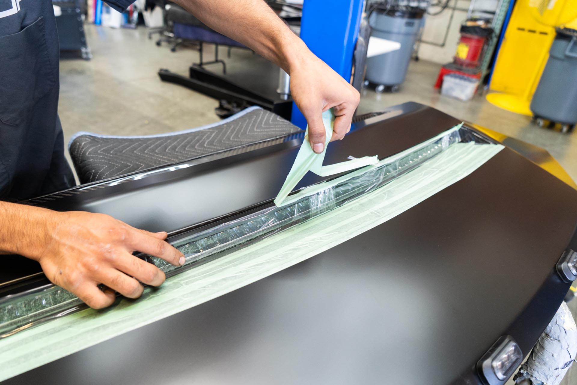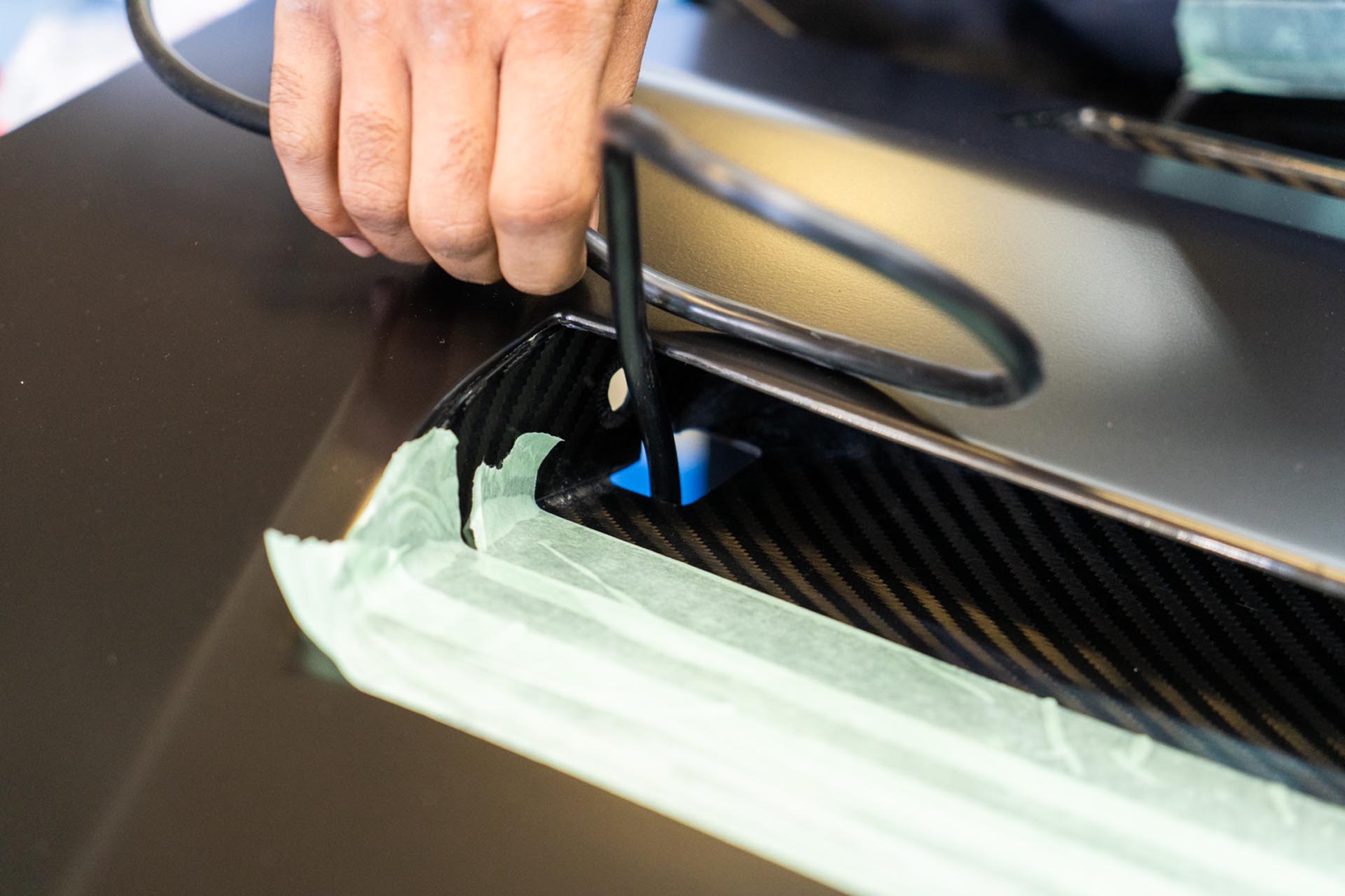 Apply masking tape on and around the slot for the curved light bar to ensure no surface damage occurs during the assembly stage.