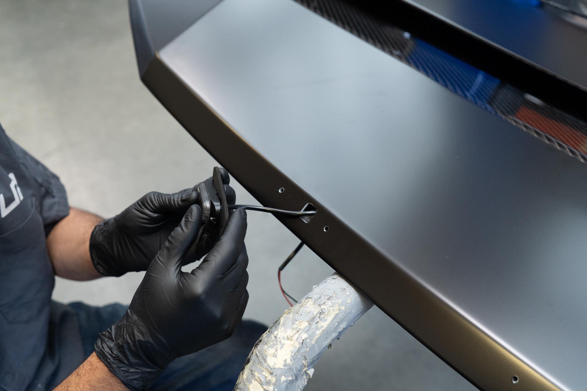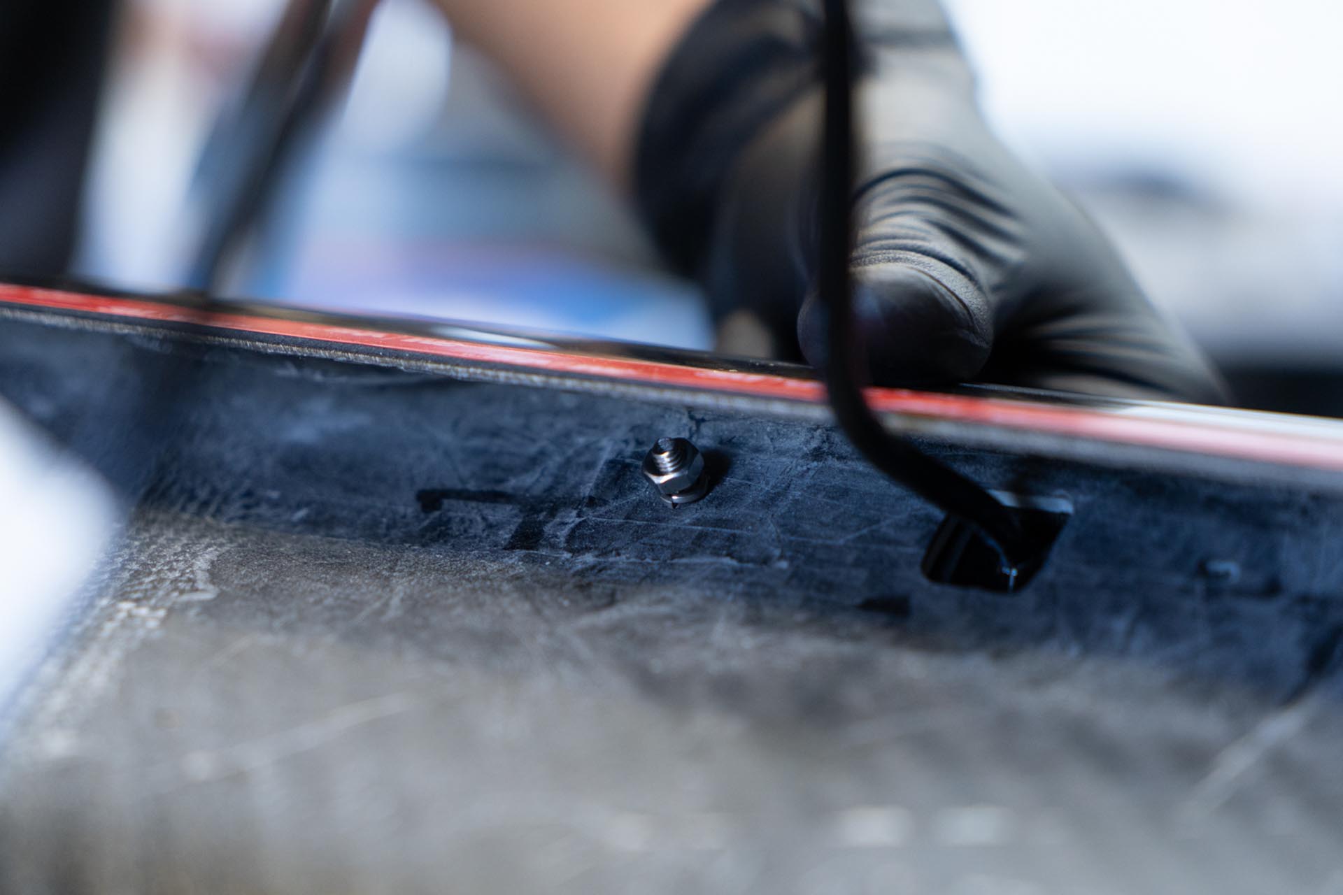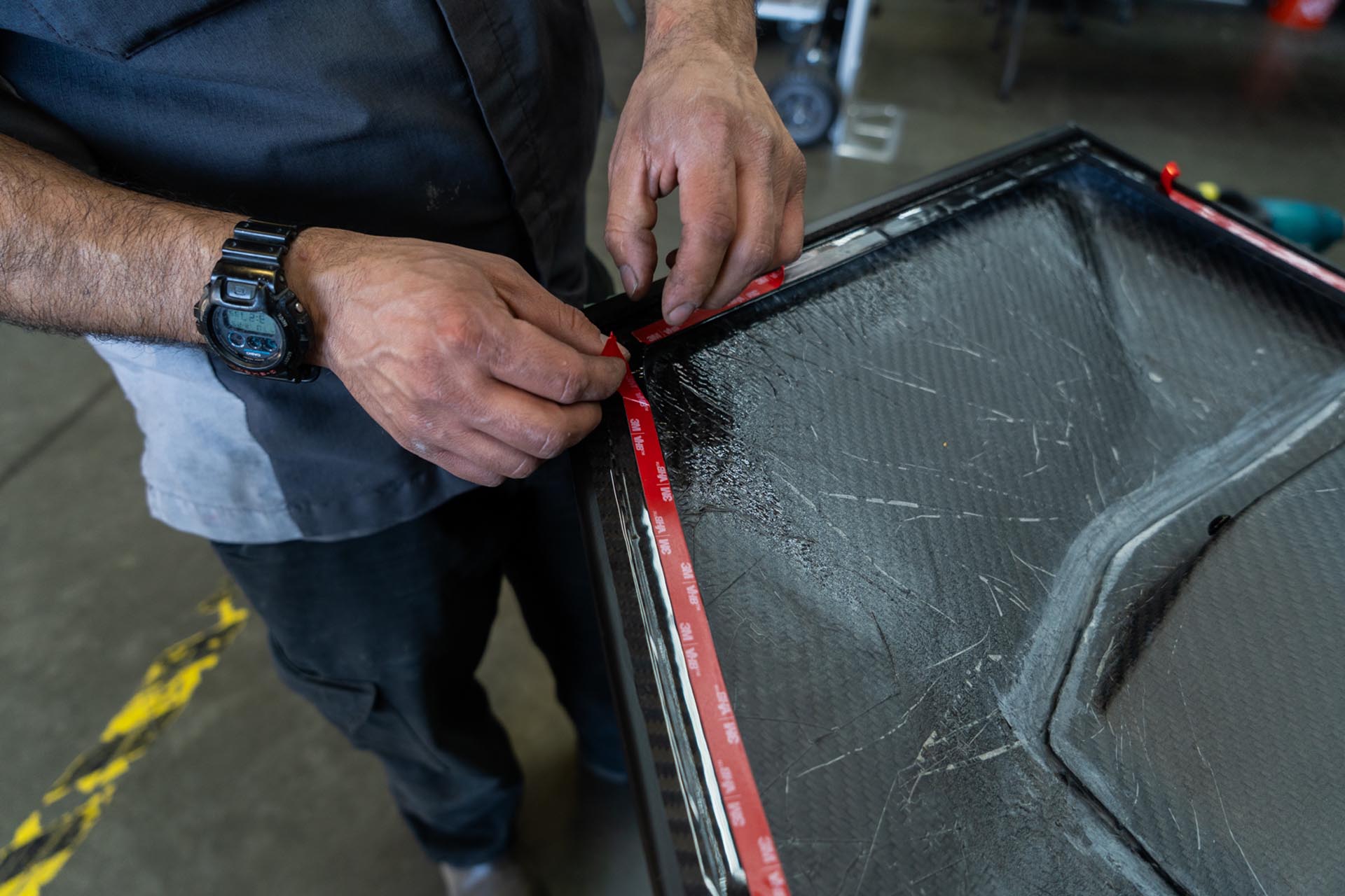 Apply masking tape on and around the slot for the curved light bar to ensure no surface damage occurs during the assembly stage.