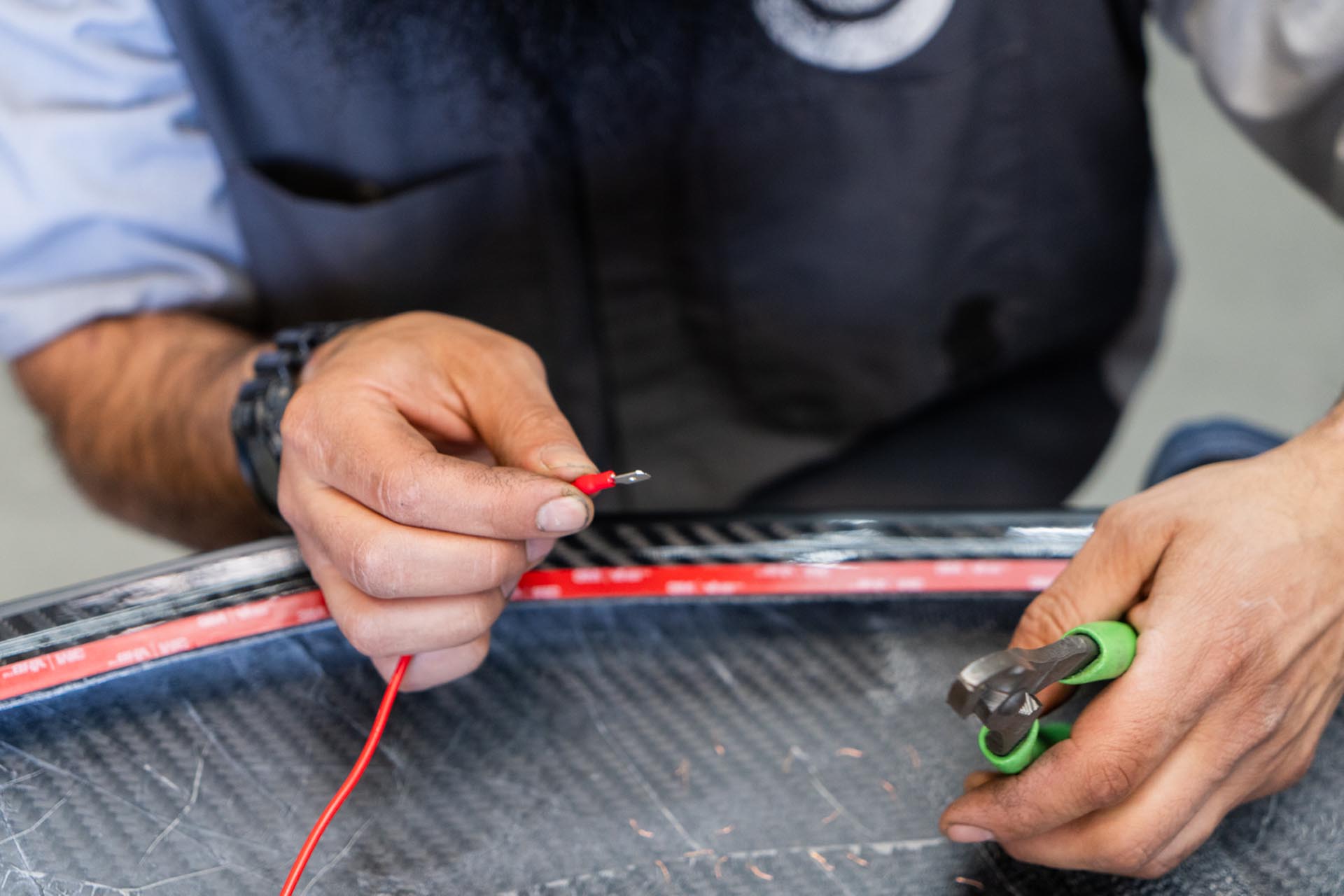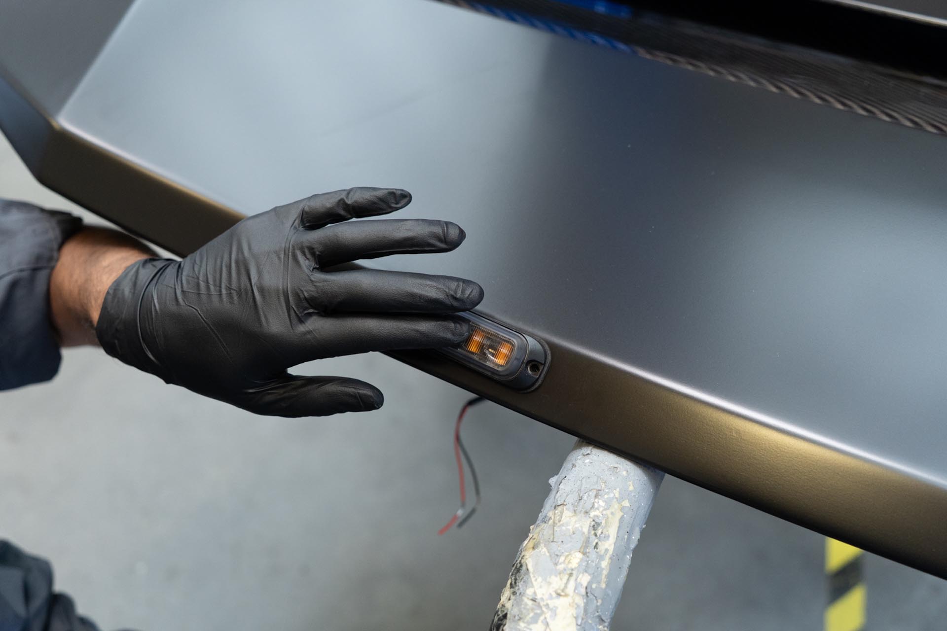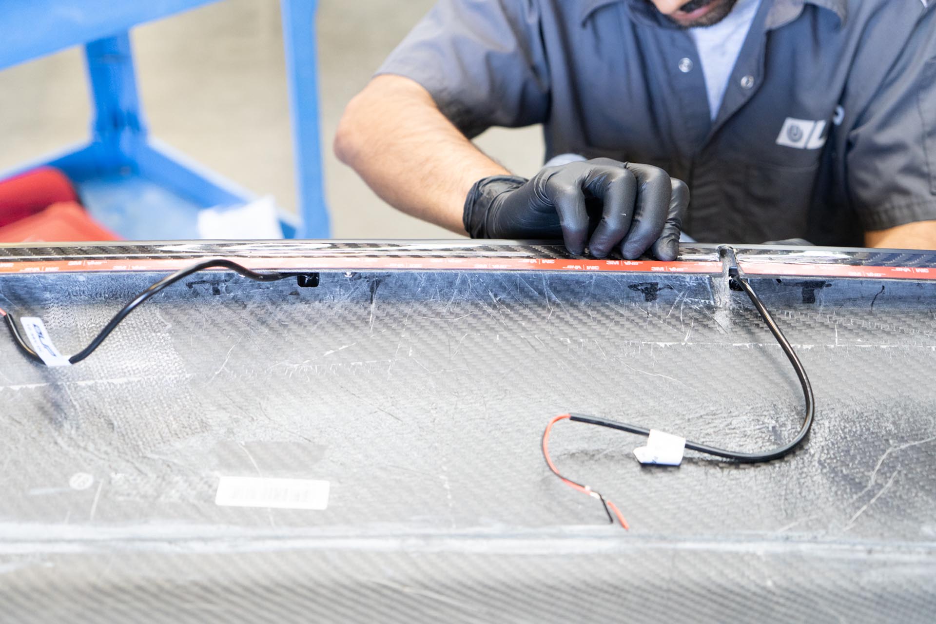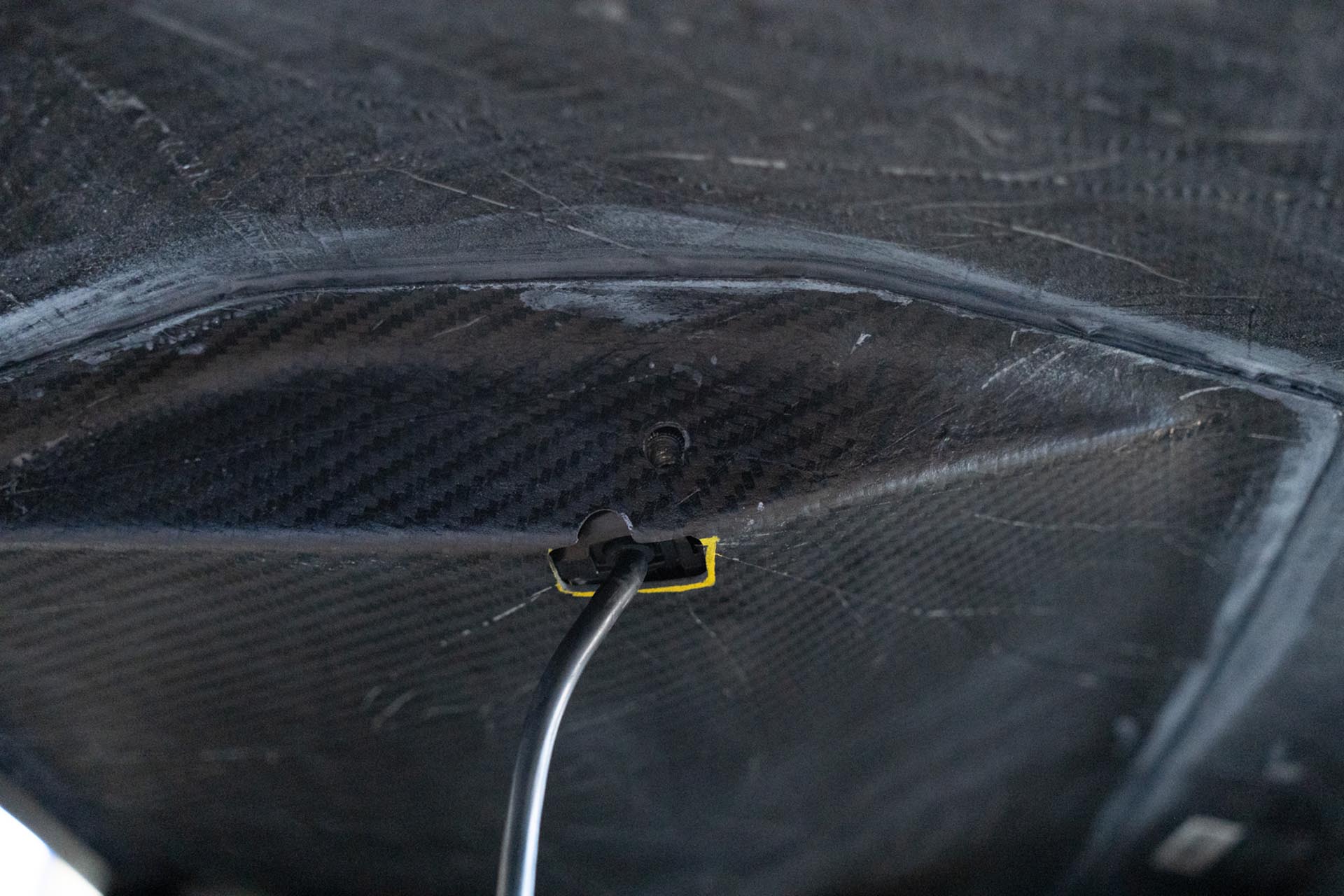 Apply masking tape on and around the slot for the curved light bar to ensure no surface damage occurs during the assembly stage.