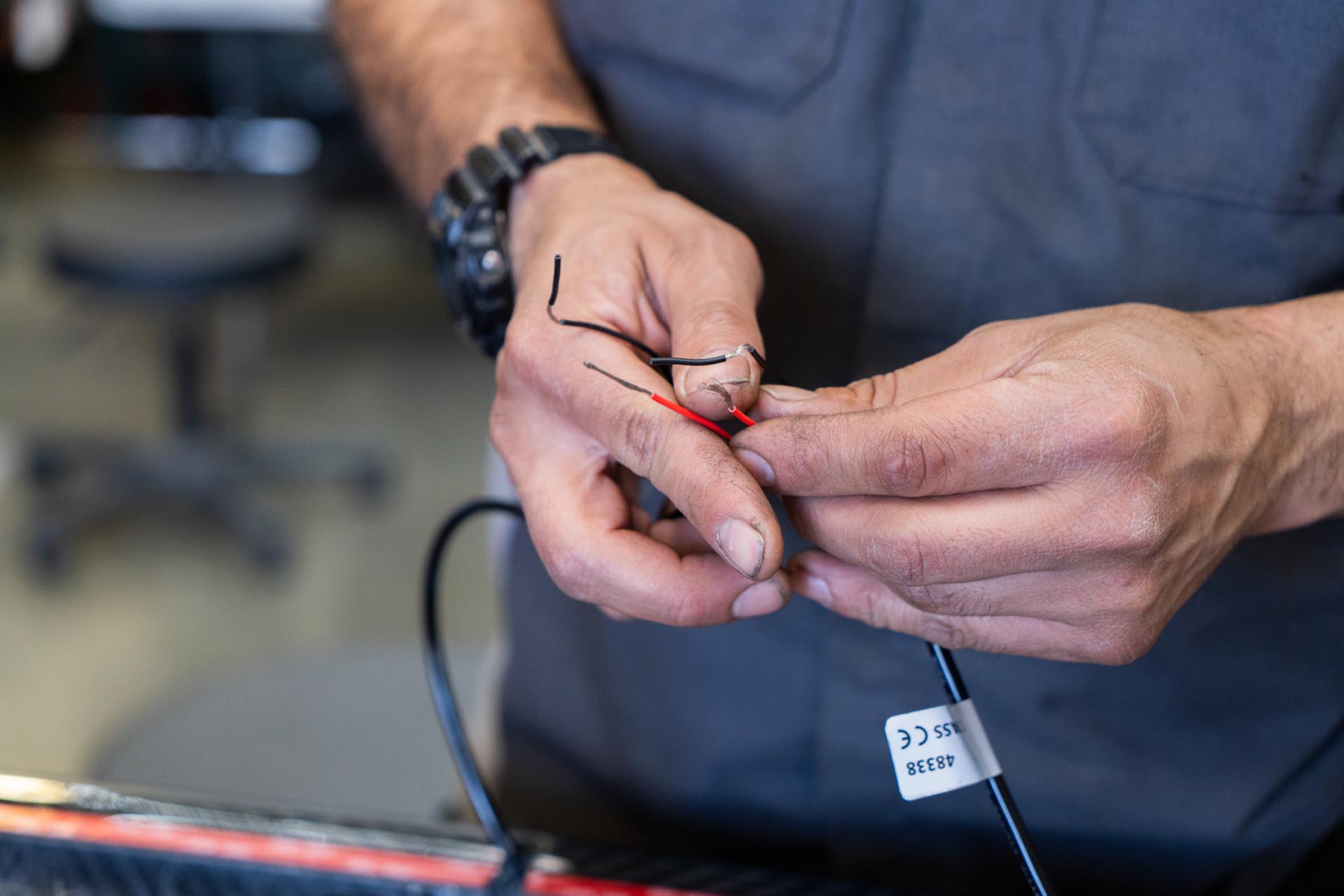 Unwrap and expose the factory front power feed.