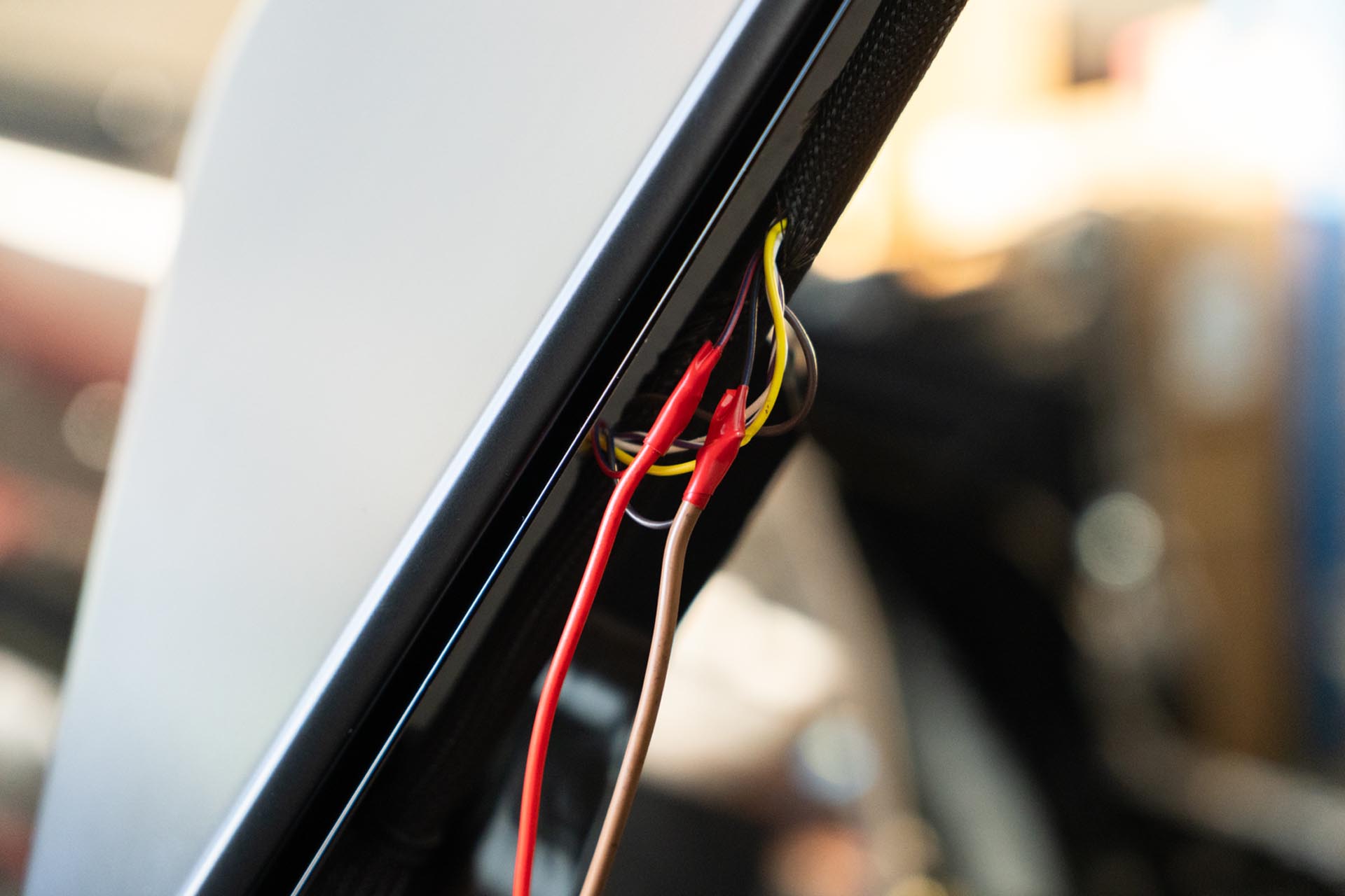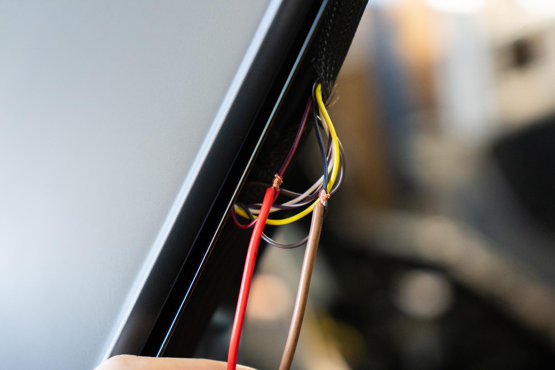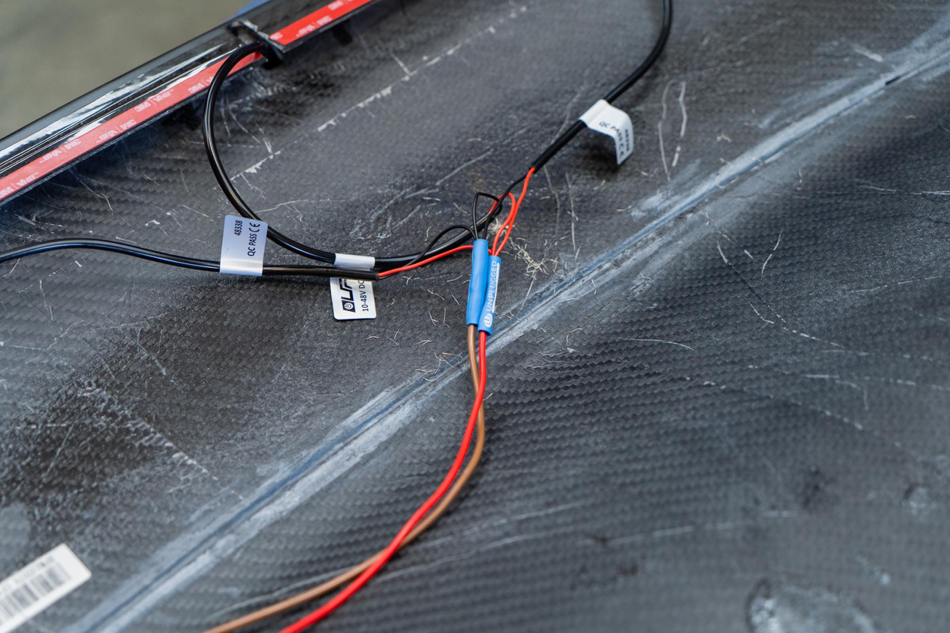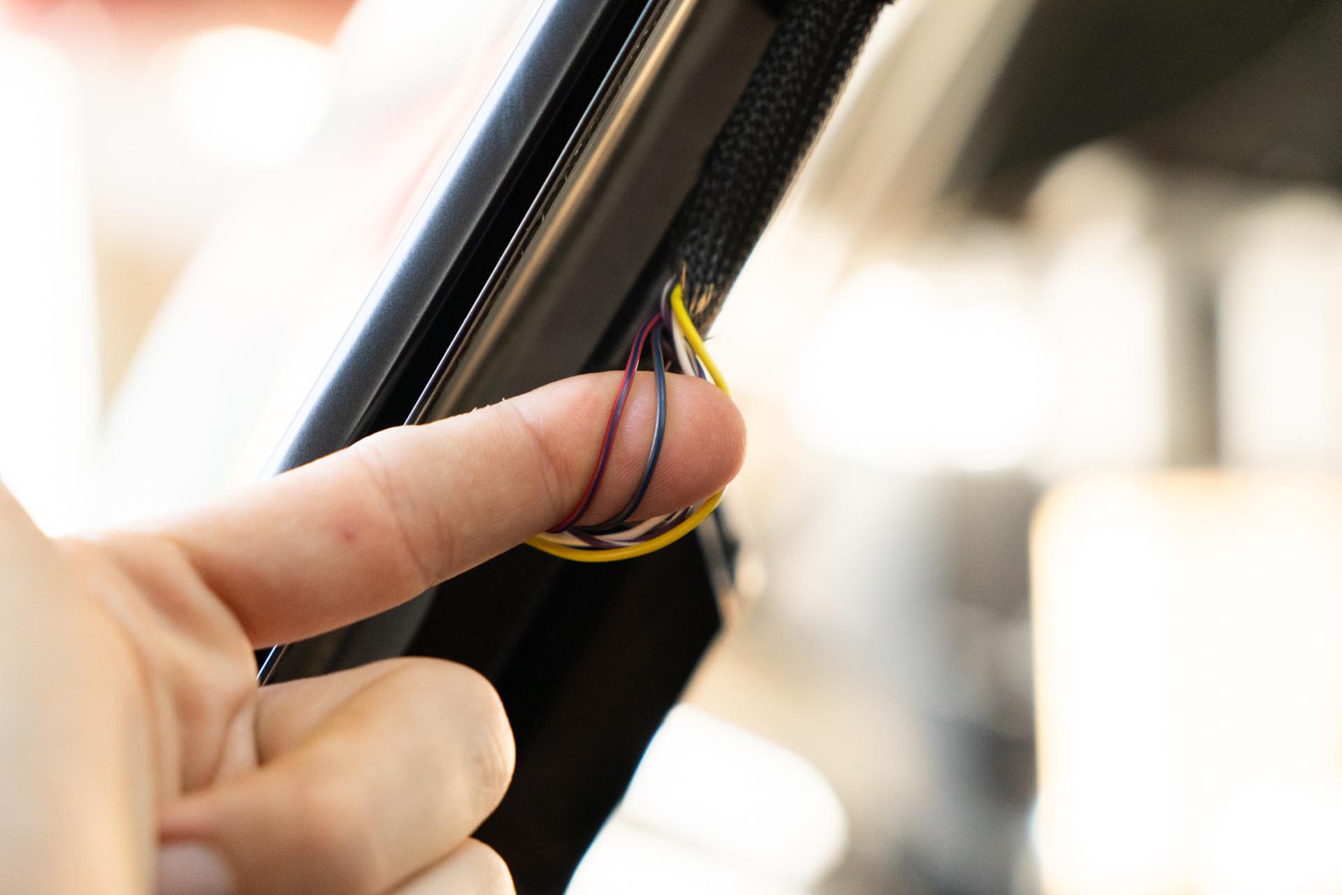 Should you choose to proceed, route your amber lead cables to tether to the factory DRL power feed. Be sure to route the cabe in a way where it is not impacted by the range of motion of the hood, nor pinched by the hood hinge.