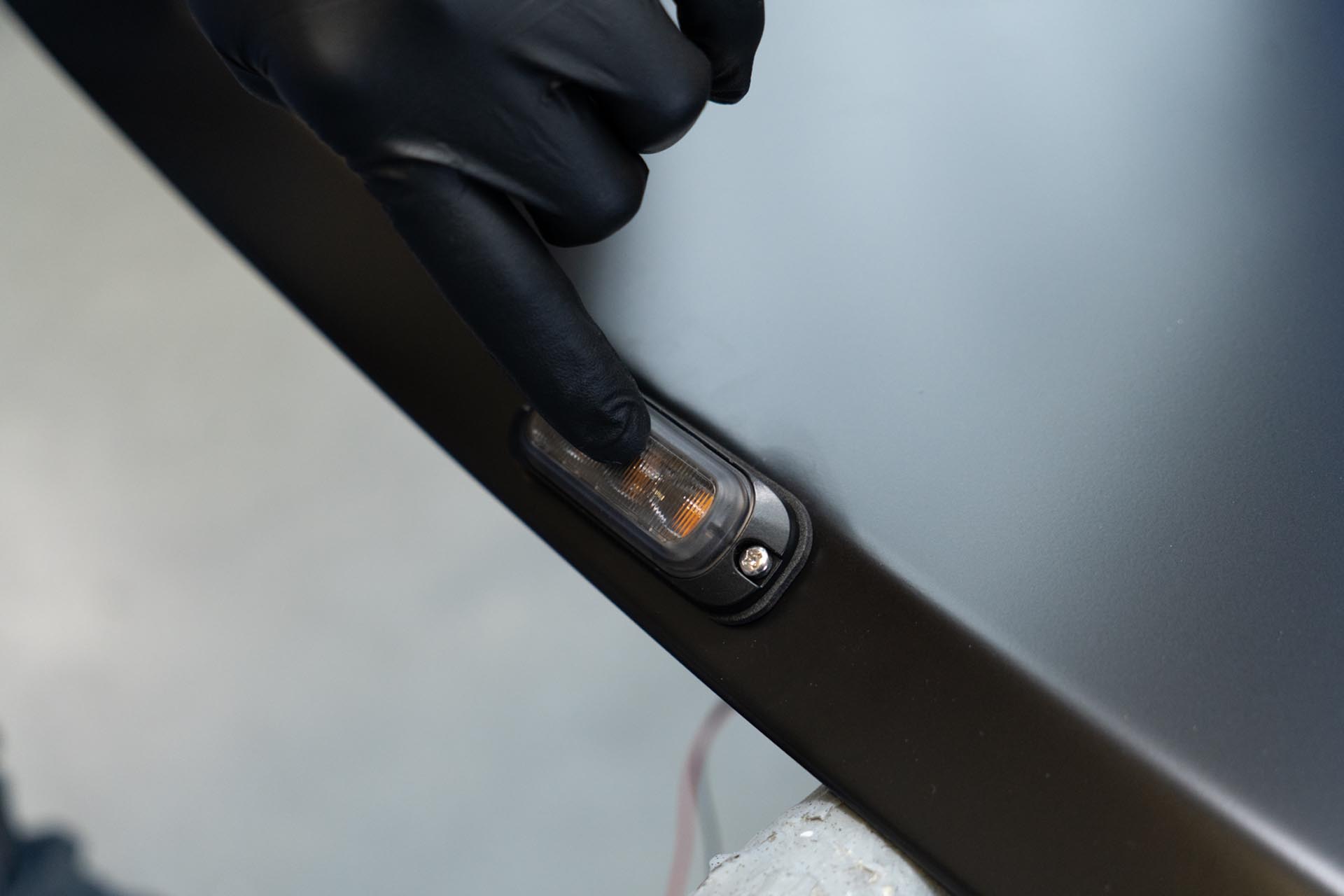 Test fit each amber light assembly in your hood as shown below.