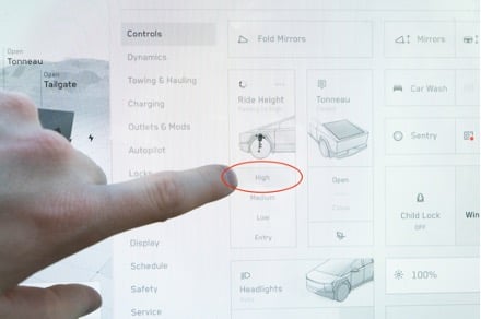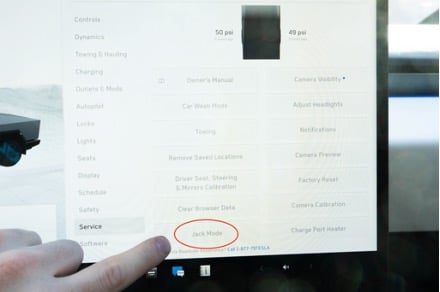 Place the truck in the highest setting and place the truck into jack mode. This is a safety measure to make sure that the ride height does not change while servicing the vehicle, while also providing additional clearance to some necessary access points.