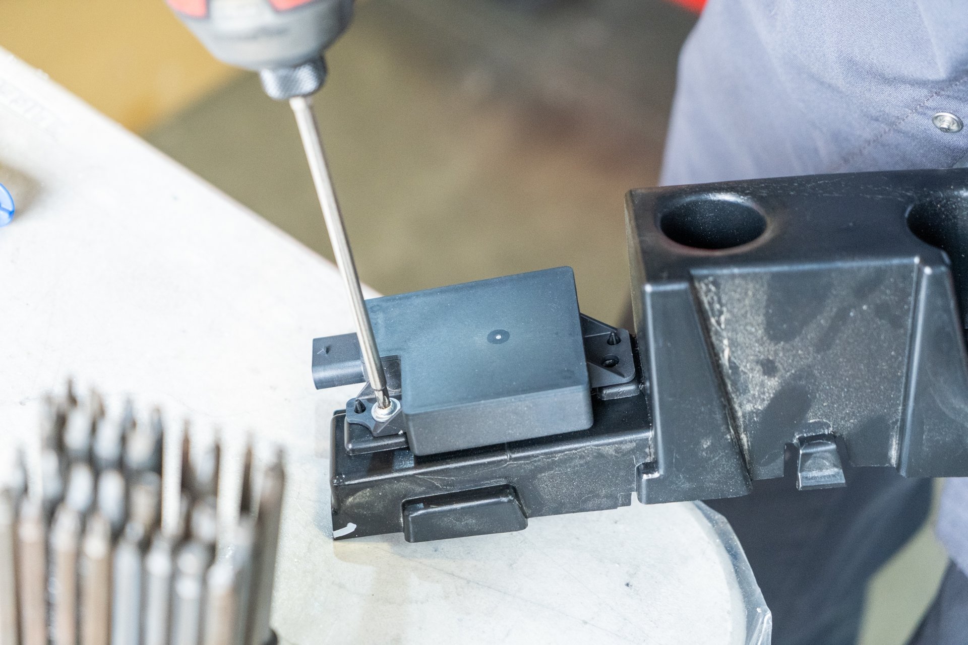 Using a T25, remove both bolts securing the Bluetooth sensor to the trim piece.