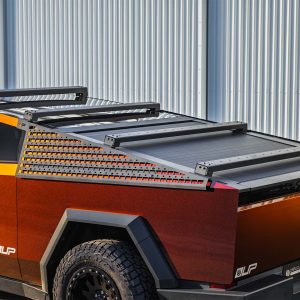 UP INVINCIBLE® Side Sail Panel MOLLE Rack Set enables even more adventure for your Cybertruck. MOLLE stands for Modular Lightweight Load-carrying Equipment and as such the heavy duty MOLLE panels, which cover the side sail panels along the outside upper-edge of the Cybertruck’s bed, turn that surface into functional mountable surface area for lightweight off-road gear, camping gear, or kill-all-the-zombies gear. The Side Sail MOLLE Rack Set mounts to the lower 3 UP INVINCIBLE® Roof Rack rails or can be installed on factory mounting points using included mounting brackets.