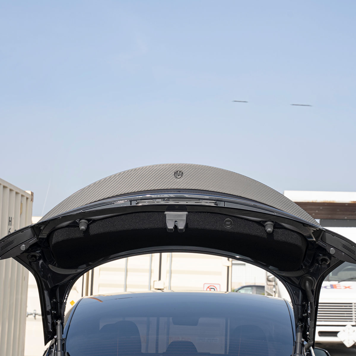 This is the spoiler for owners who want the performance look without the “giant wing” energy. The high-efficiency carbon rear spoiler is the perfect OEM+ finishing touch for the Highland trunk line. Honestly, it’s subtle enough to look factory, but engineered to bring real benefits at speed. Developed using extensive CFD simulation work, it’s designed to help reduce drag and improve stability by managing airflow and delaying separation at the rear of the car.