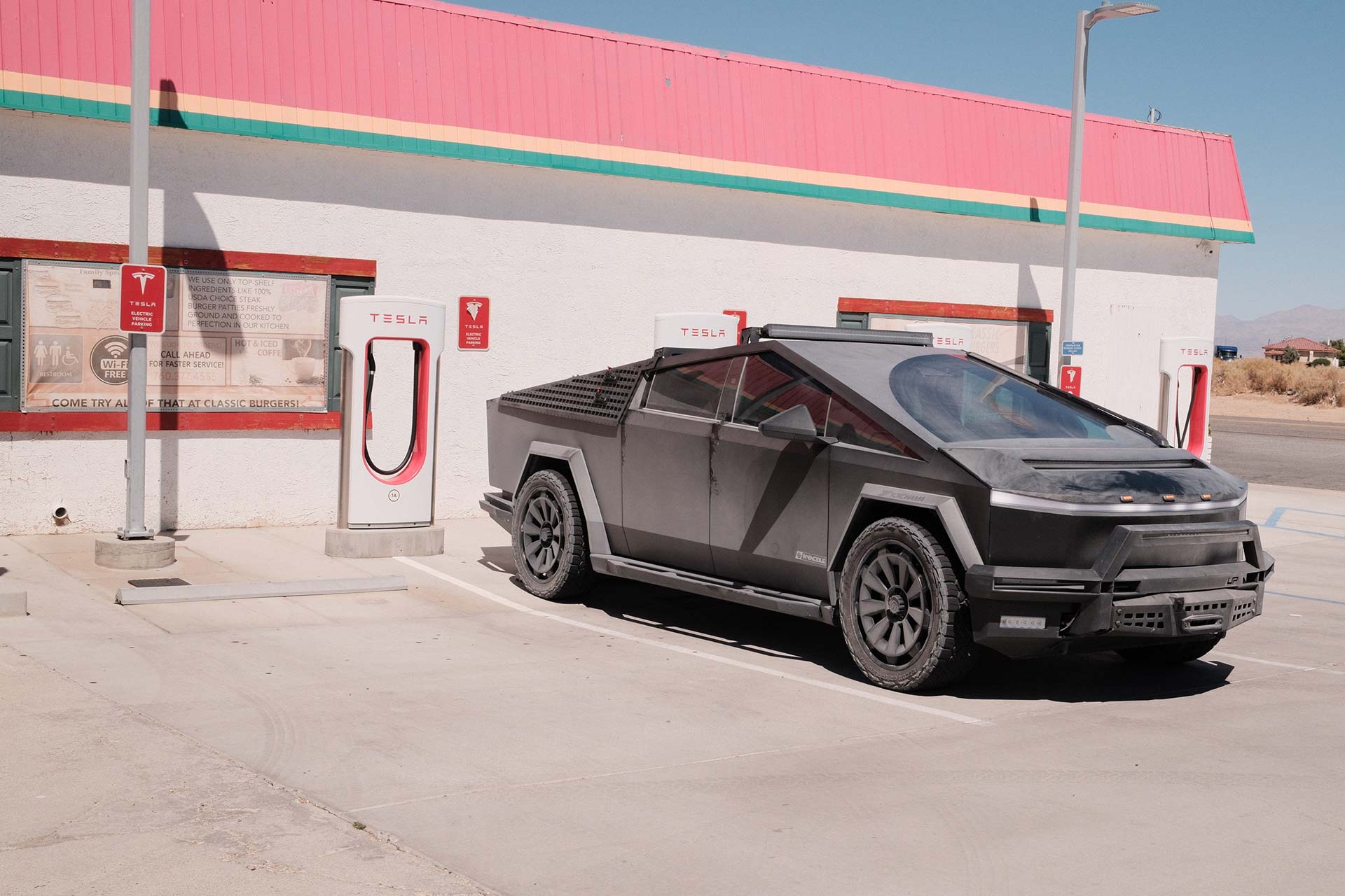 We pulled into Inyokern at 3 p.m. and found energy in every corner of the lot. Cybertruck owners were already there, discussing their love for the truck and excitement for the weekend ahead. A good Supercharger stop has three things: reliable power, a place to buy essentials, and food. Inyokern checks all three. There’s a nearby market that stocks water, ice, sunscreen, and small comforts that matter in the desert. Classic Burger next door serves exactly what the name promises. We ordered bacon avocado cheeseburgers, crinkle cut fries, a refreshing cup of Coke and can confirm they are worth the stop.
